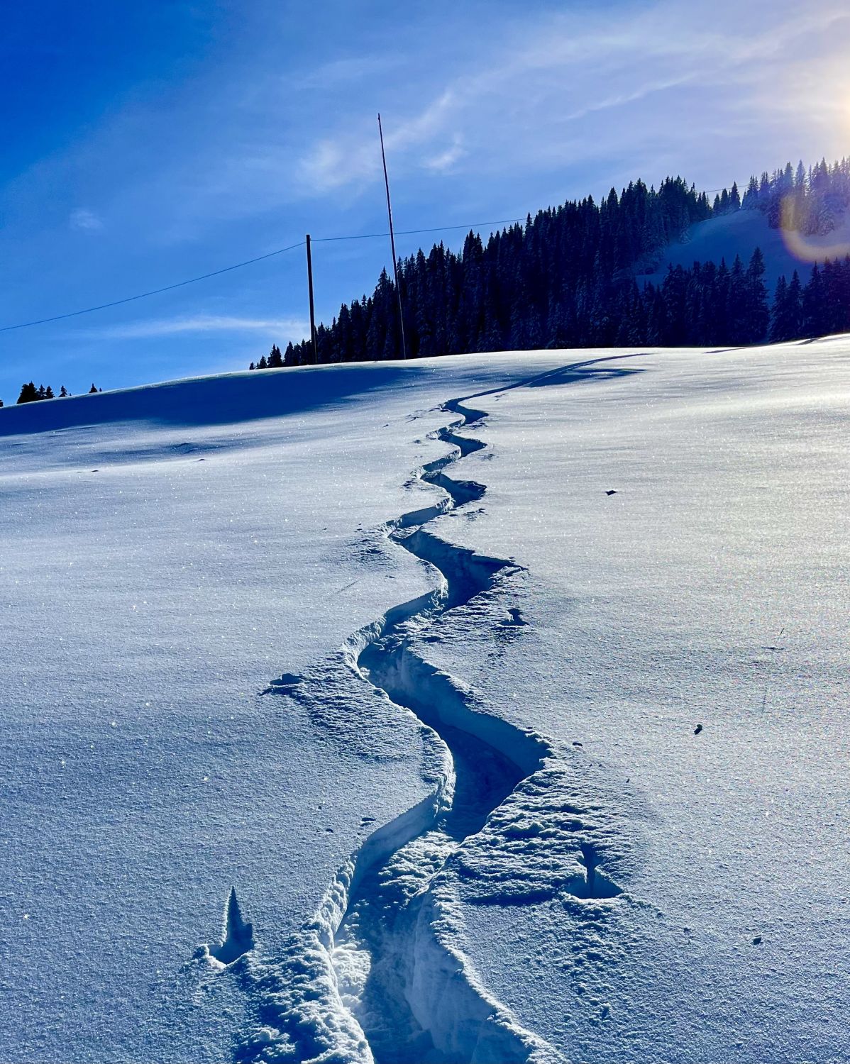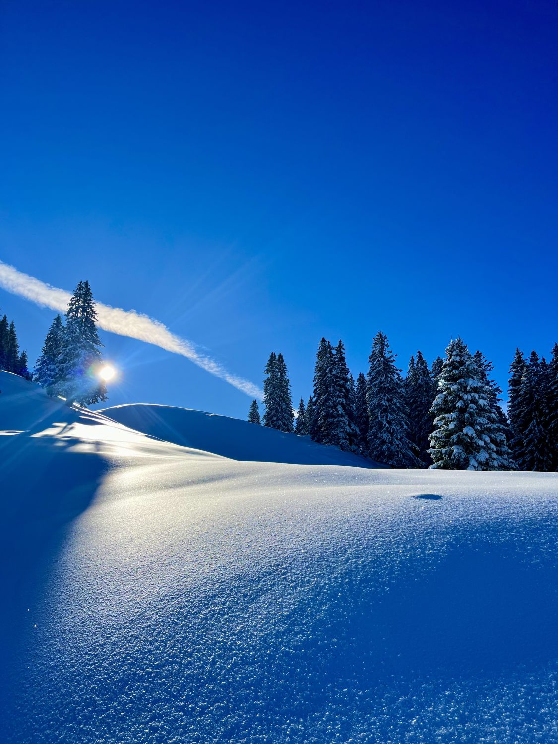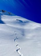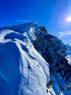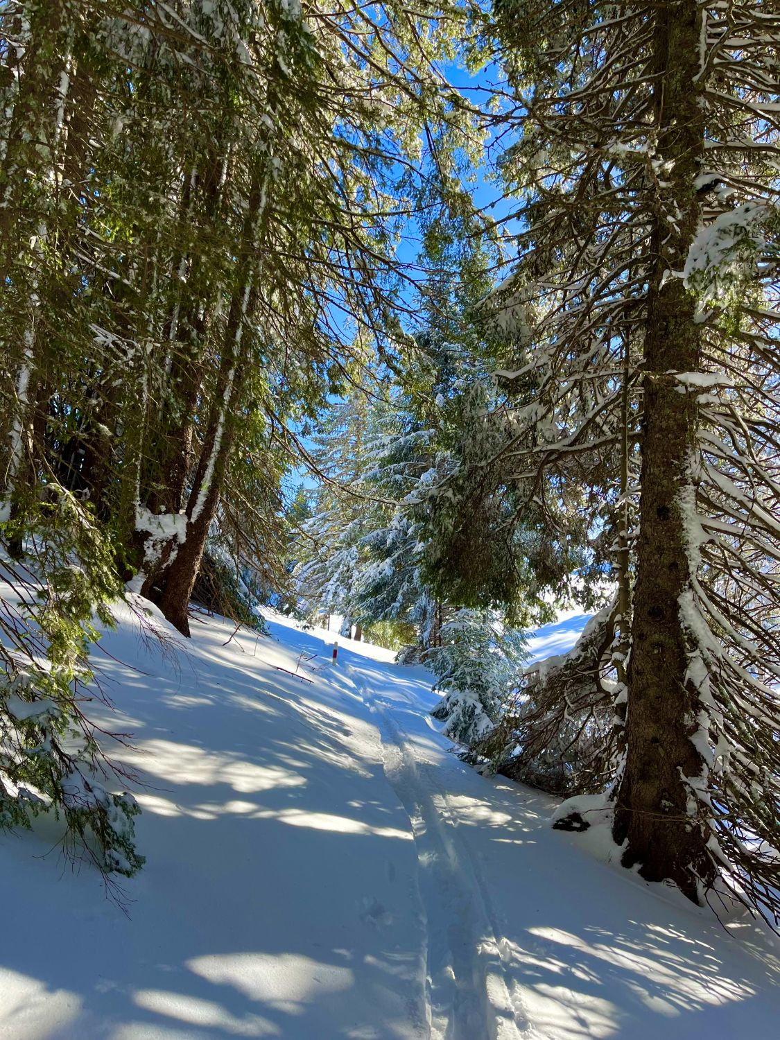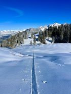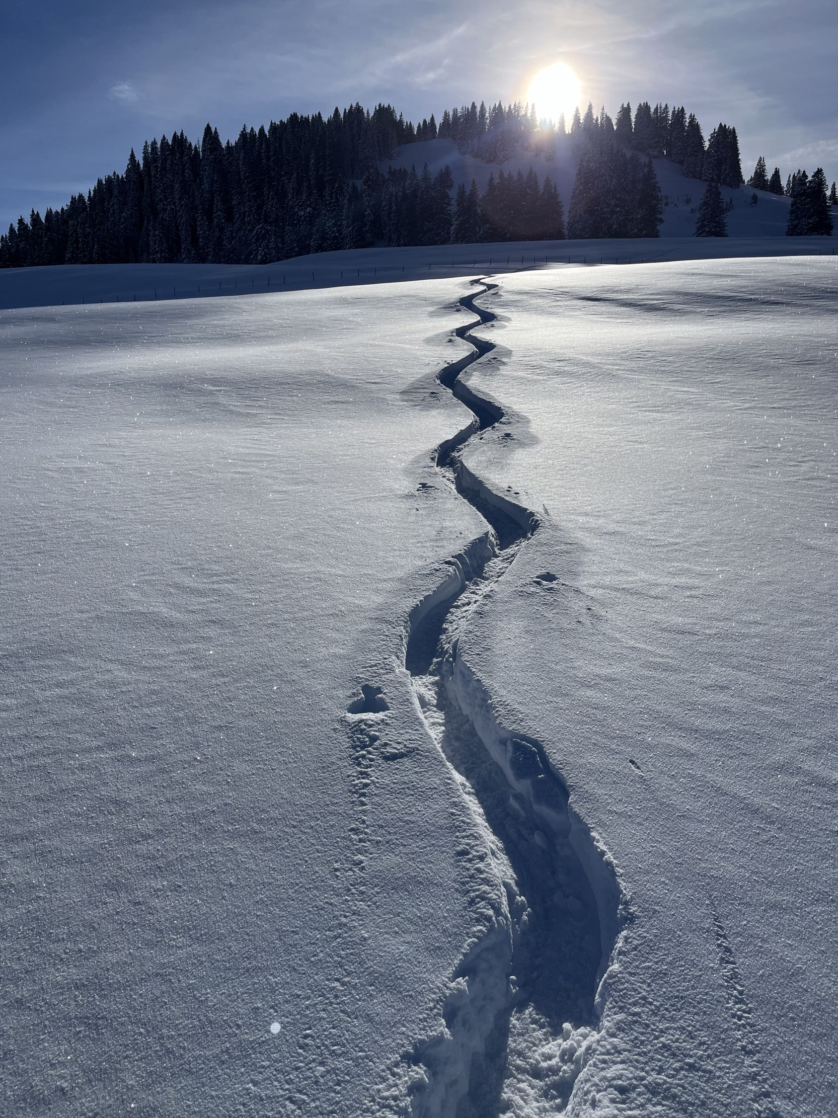 Top Verhältnisse. Im Talboden in St. Stephan hat es noch zu wenig Schnee. Bin Richtung Dürrenwald hochgefahren bis in die Kurve unterhalb Untere Ougstebode auf 1333 Meter. Ab dieser Höhe hat es eine gute Schneeunterlage mit ca. 20-30 cm Neuschnee. Dann nimmt die Schnehöhe zu bis ca. 40 cm. Es war harte Spurarbeit. Der Pulverschnee ist bis auf den Gipfel wunderschön. In Kammnähe ist der Schnee zum Teil Windgepresst. Es gab kein Steinkontakt. Traumhaft schönes Wetter und angenehm warm. Auf dem Gipfel hatte es leichten Wind. Flöschorn ist ganz abgewindet und nicht lohnend