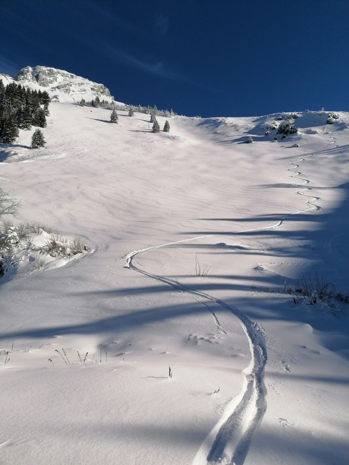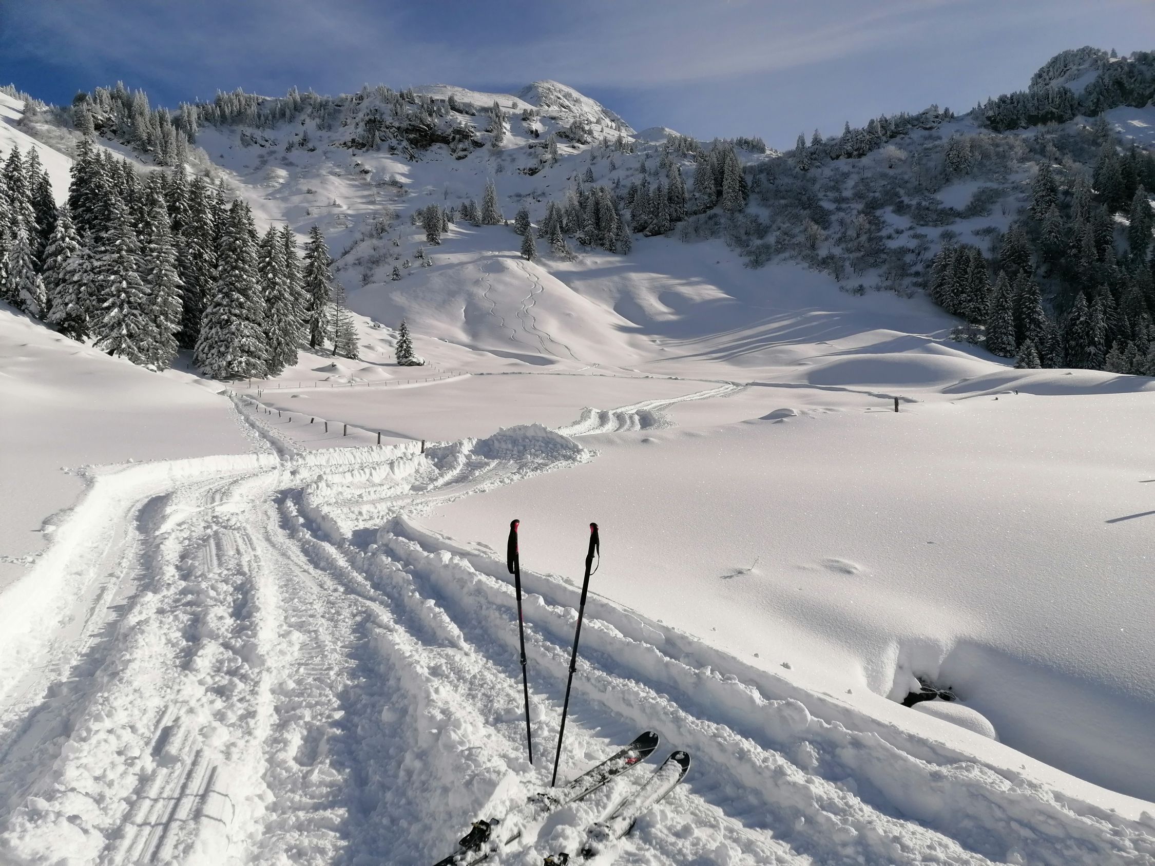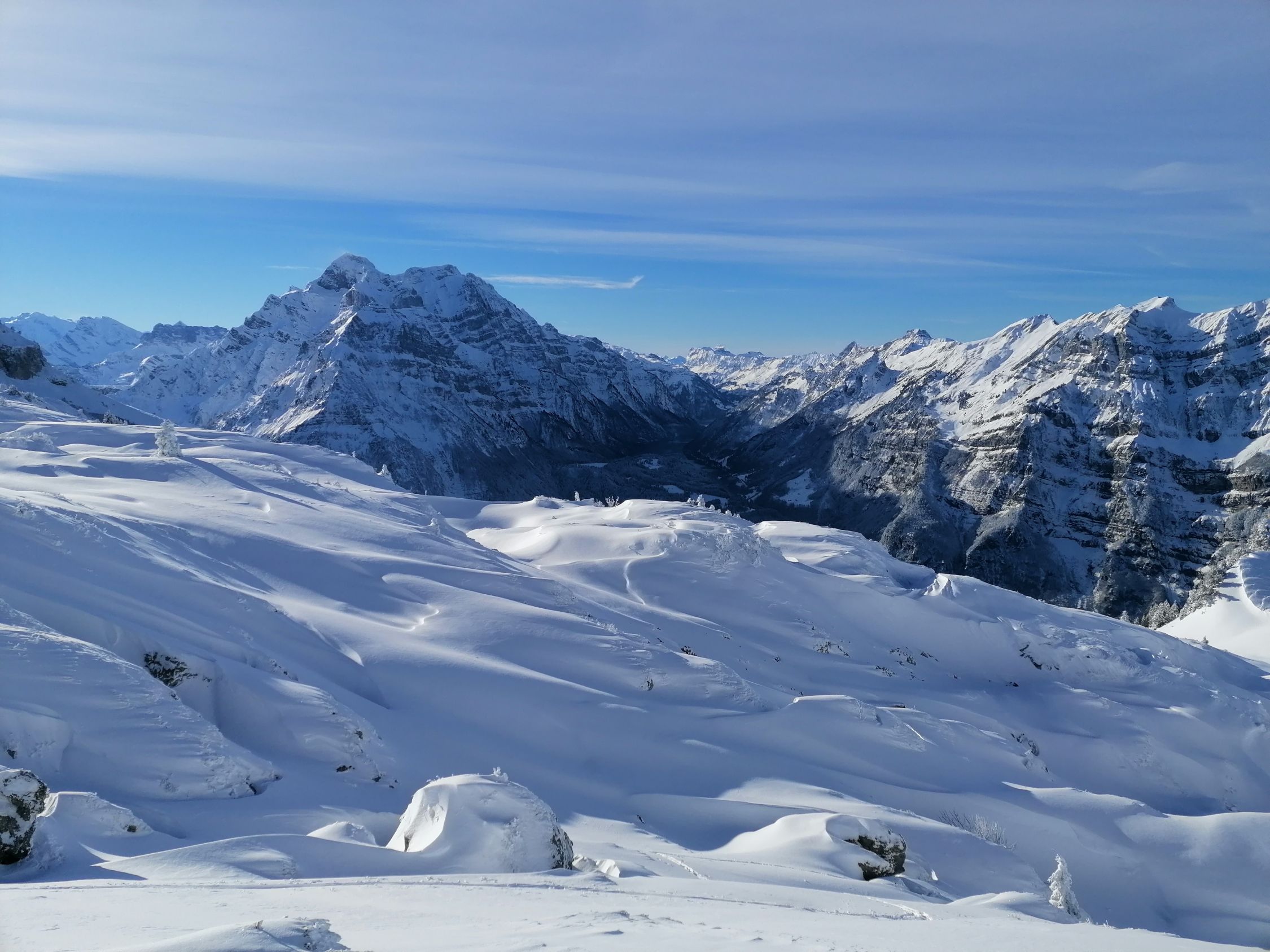 Bis zum Heustöckli auf 1800m super Verhältnisse, auf 1100m ca 15cm Pulver auf nasser Regenunterlage, danach schnell mehr und ab 1400m ca 40cm schönster Pulver. Ab 1800m dann leider stark windgeprägt mit Steinen auf Kuppen, in Mulden aber super. Aufgrund Wind dann auf Kamm auf 2000m umgekehrt. Abfahrt war traumhaft und kein Steinkontakt, oben wahrscheinlich nicht ohne Steinkontakt machbar.