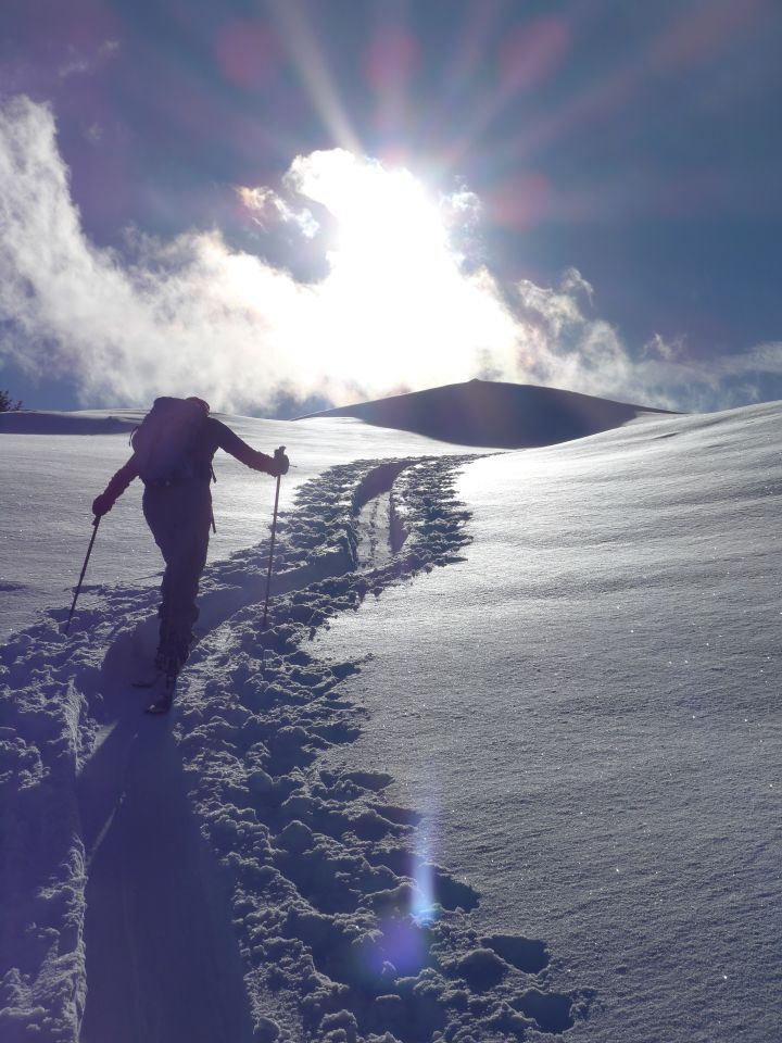 In Grabs lag nur ca. 5 cm Schnee. Daher sind wir auf 830 m (Grueben) hochgefahren und dort gestartet. Ab dort war genug Schnee, ca. 30 cm, weiter oben natürlich noch viel mehr. Der Schnee bleib bei kalten Temperaturen trotz Sonnenschein schön pulvrig.
