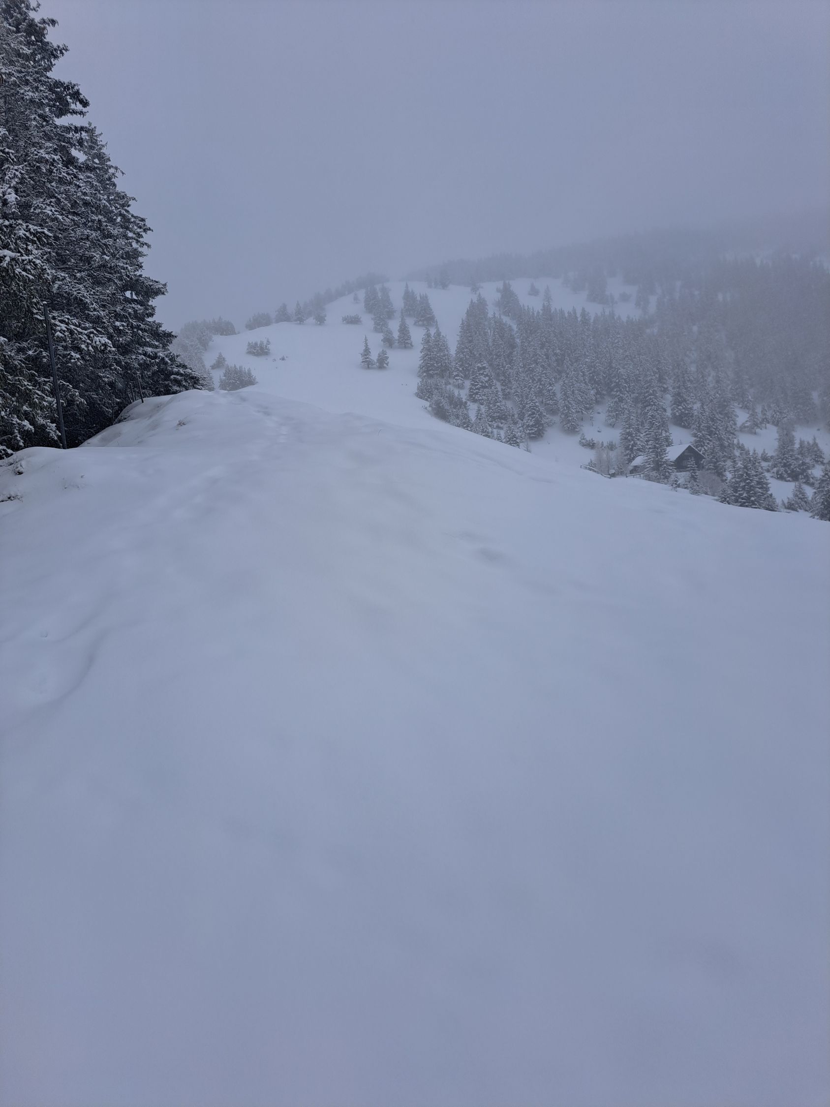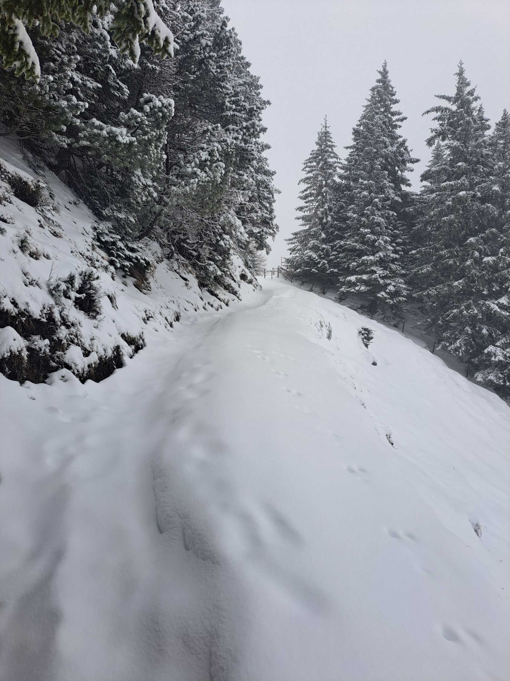 Aufgrund des Regens recht wenig Schnee bei Gaflei.