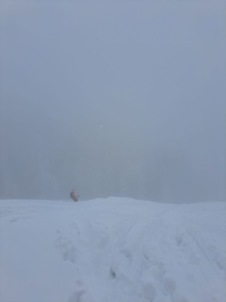 Im Tiefschnee blieb man selbst in der Falllinie einfach stecken...Also in der Spur Schwung holen und dann auf den Stillstand warten..