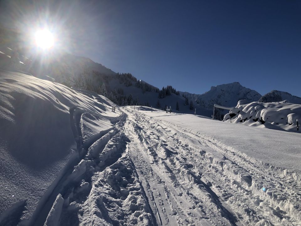 ÖV-Tour ab Schwarzenburg. Start Hengstkurve 11:05. Super Spur, daher reicht die Zeit bei entsprechendem Einsatz für Poschi 13:25.