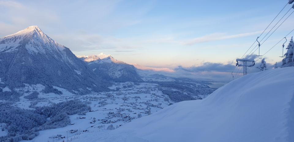 Im Aufstieg ab Aeschiried Schulhaus stets gut eingeschneit. Obere Abfahrt im trockenen, tiefen Pulver. Im Wald unterhalb Gibel geringe Auflage, hier wenige Minuten Ski getragen. Untere Hänge wieder gut mit kompaktem Pulver.