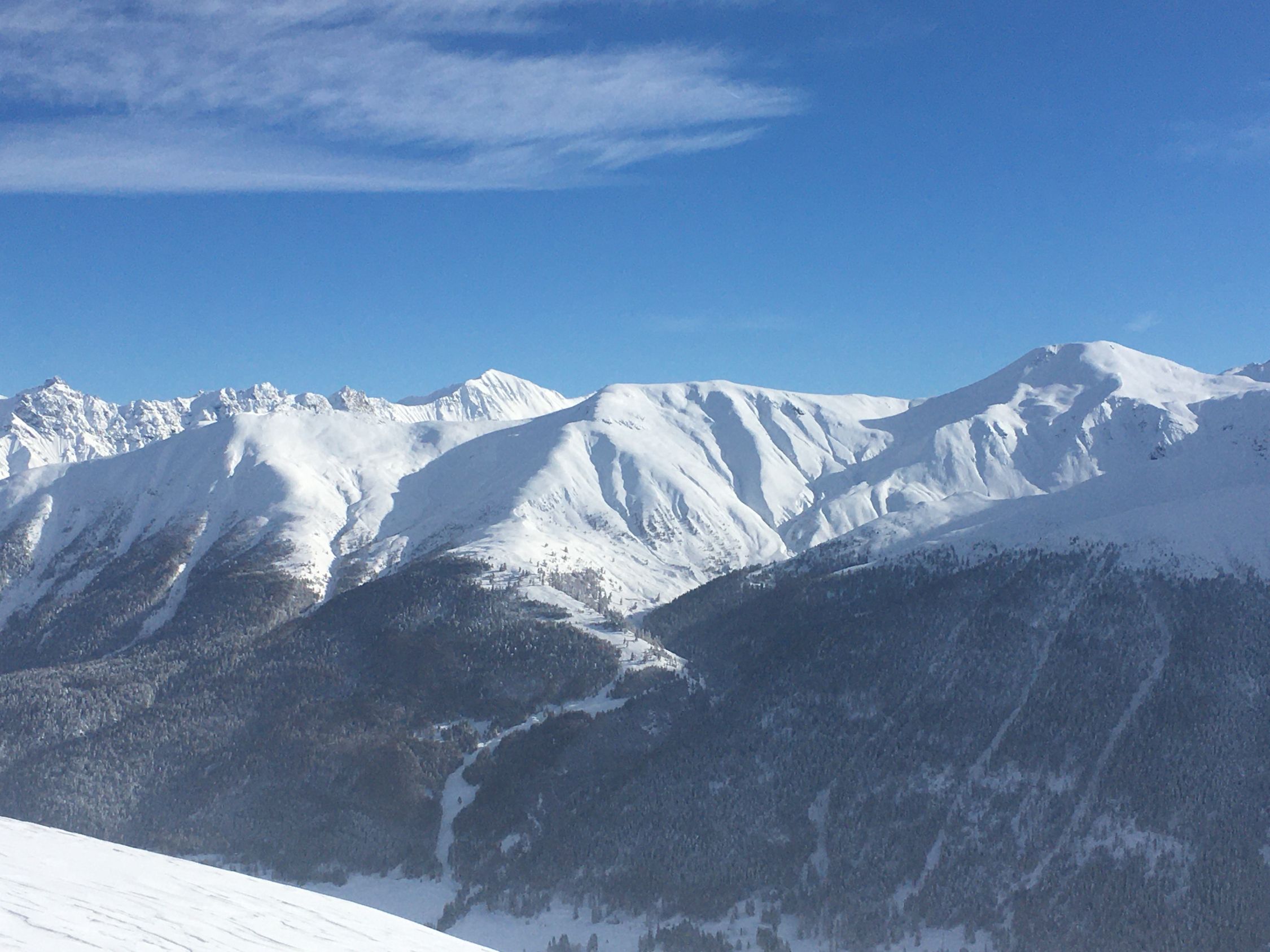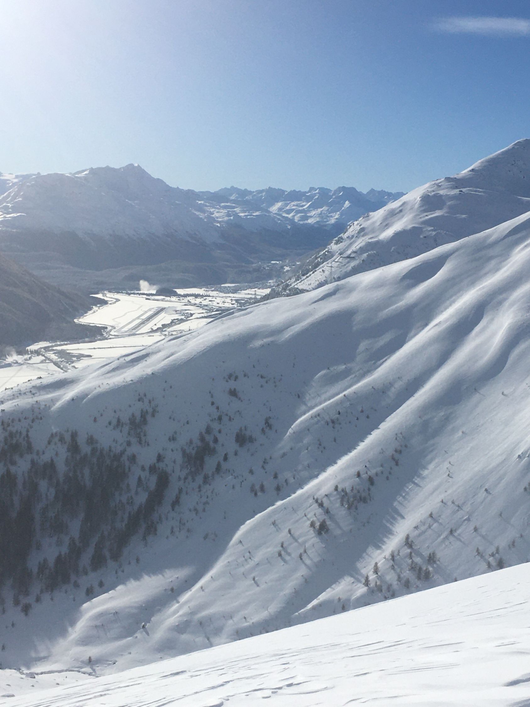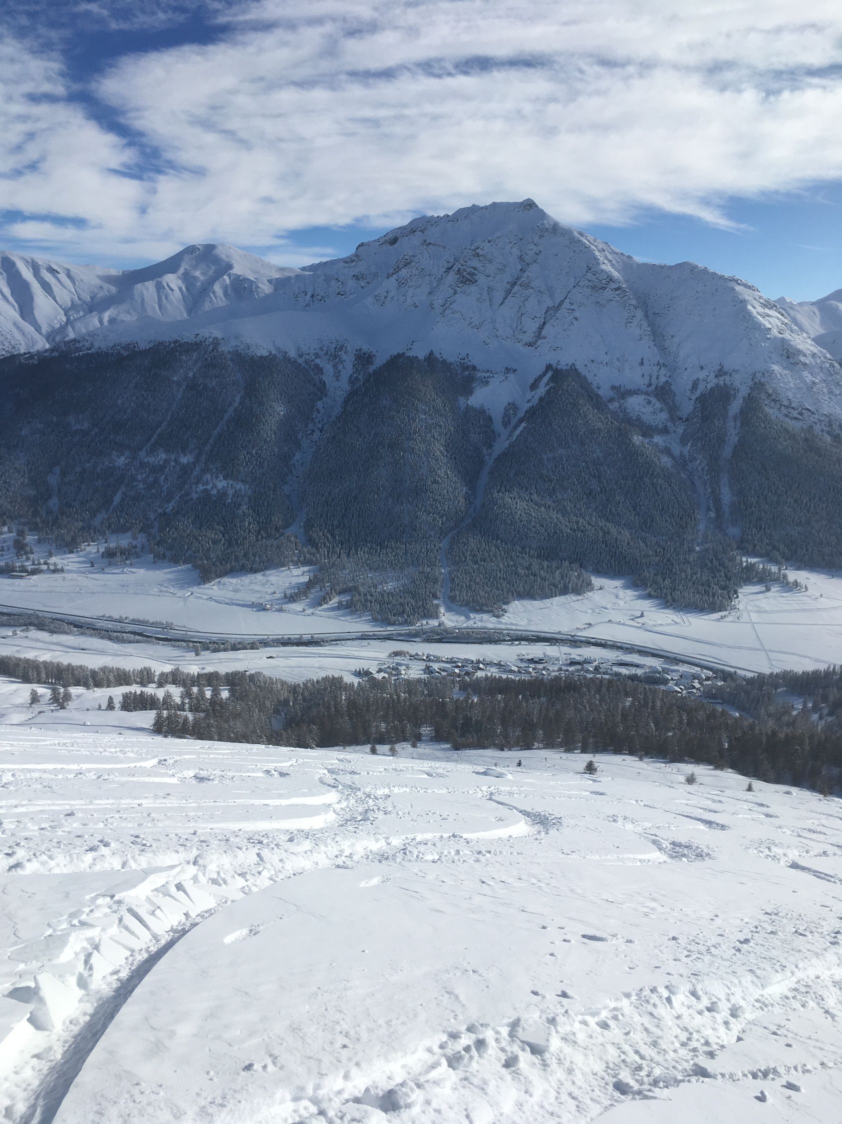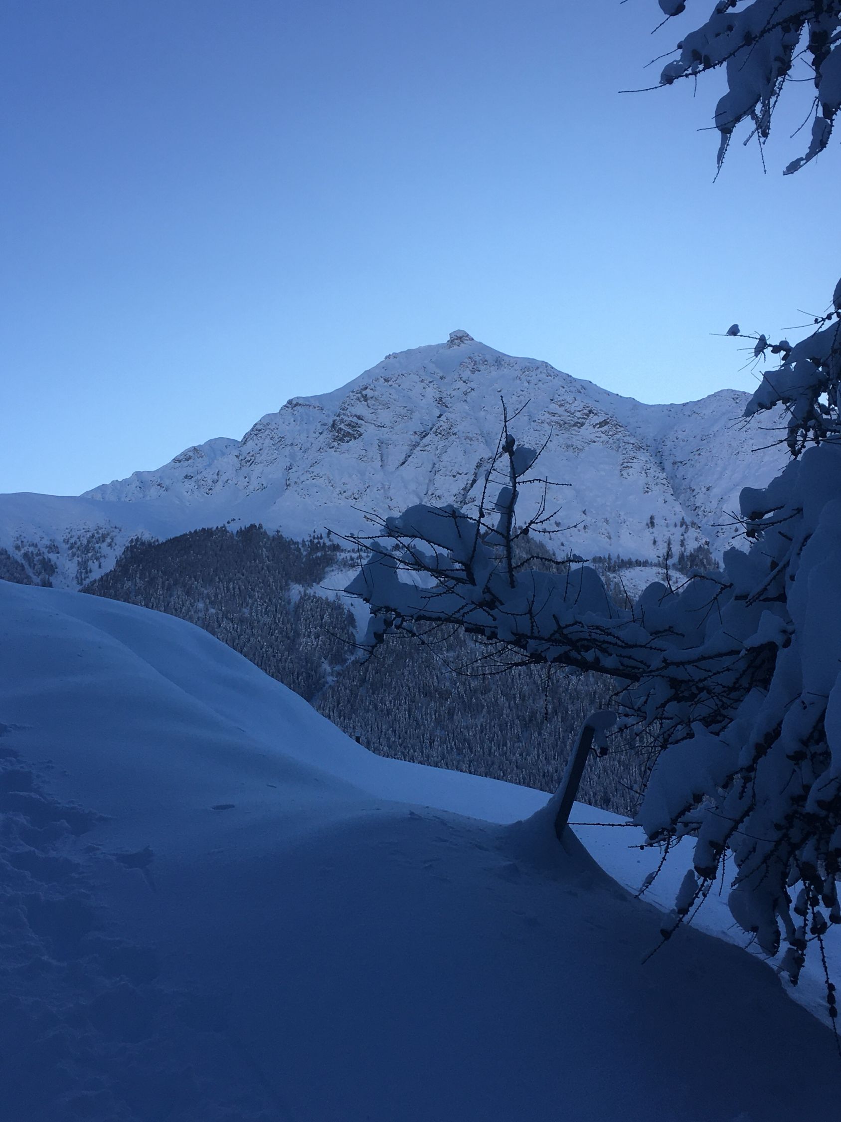 Perfekte Neuschneetour auf den attraktiven Berg mit langer nicht zu steiler Südostflanke. Start Bahnhof Madulain 8.30 Uhr, minus 20 Grad, windstill. Mich haben sicher über 25 Italiener überholt, halb Lecco war hier unterwegs. Dadurch konnte ich von der guten Spur profitieren Richtung Piz Belvair. Ein teil der zahlreichen Skitourengänger begnügten sich mit der Alp Belvair, einige gingen wie ich bis Punkt 2483 und Punkt 2560, einige stiegen bis zum Gipfel hoch. Der Neuschnee, ca. 50 cm, hat sich gut gesetzt so dass der Gipfelaufstieg zu verantworten war. Die lange Abfahrt mit dem vielen Neuschnee war toll aber kräftezehrend, es gab grosse Gräben. Die Abfahrtsroute über Chamaduors und Spinas war spektakulär, alles perfekt eingeschneit.