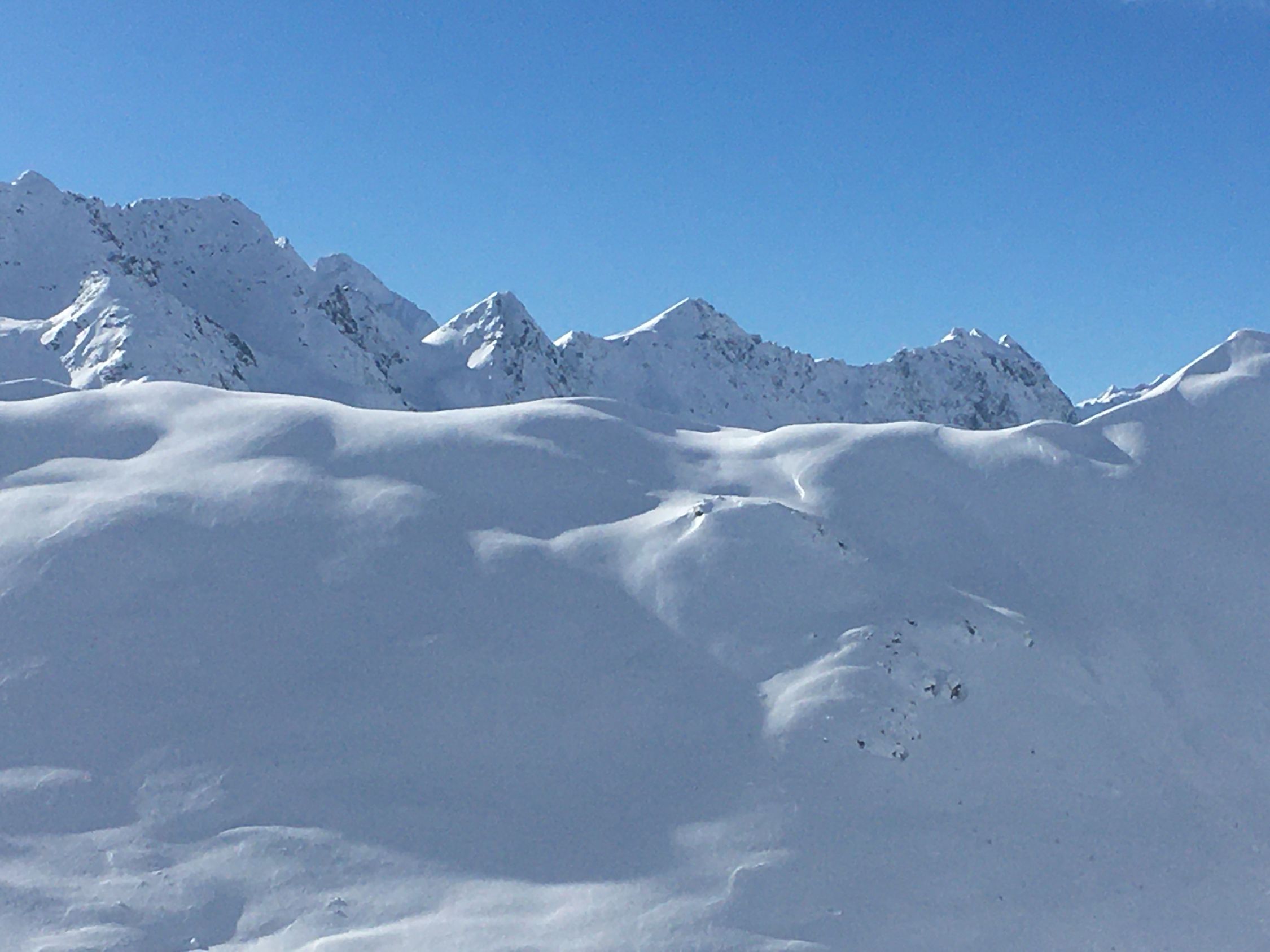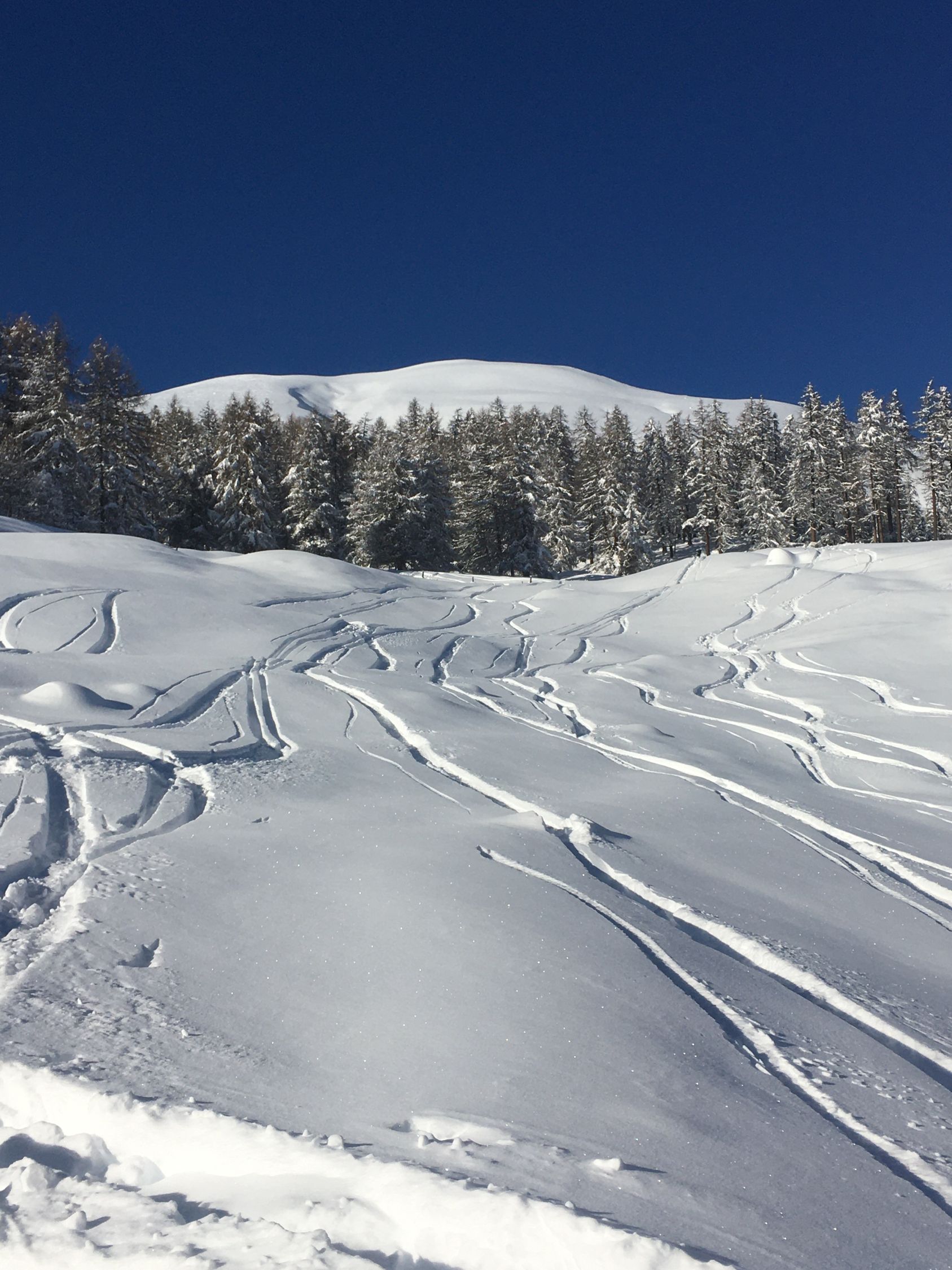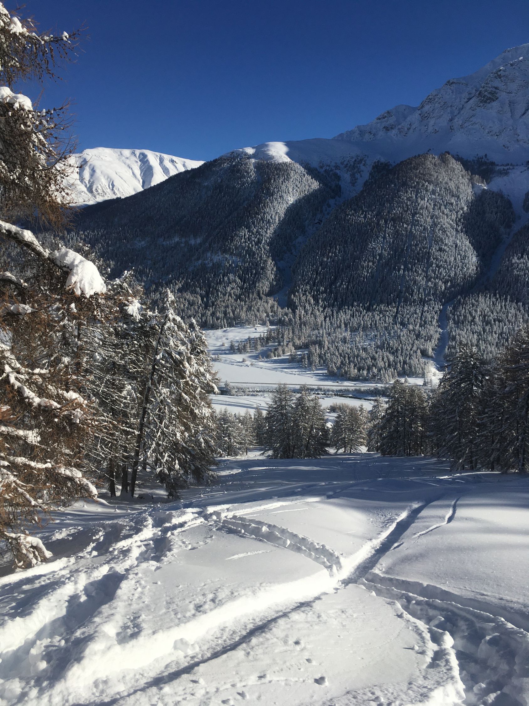 Perfekte Neuschneetour auf den attraktiven Berg mit langer nicht zu steiler Südostflanke. Start Bahnhof Madulain 8.30 Uhr, minus 20 Grad, windstill. Mich haben sicher über 25 Italiener überholt, halb Lecco war hier unterwegs. Dadurch konnte ich von der guten Spur profitieren Richtung Piz Belvair. Ein teil der zahlreichen Skitourengänger begnügten sich mit der Alp Belvair, einige gingen wie ich bis Punkt 2483 und Punkt 2560, einige stiegen bis zum Gipfel hoch. Der Neuschnee, ca. 50 cm, hat sich gut gesetzt so dass der Gipfelaufstieg zu verantworten war. Die lange Abfahrt mit dem vielen Neuschnee war toll aber kräftezehrend, es gab grosse Gräben. Die Abfahrtsroute über Chamaduors und Spinas war spektakulär, alles perfekt eingeschneit.