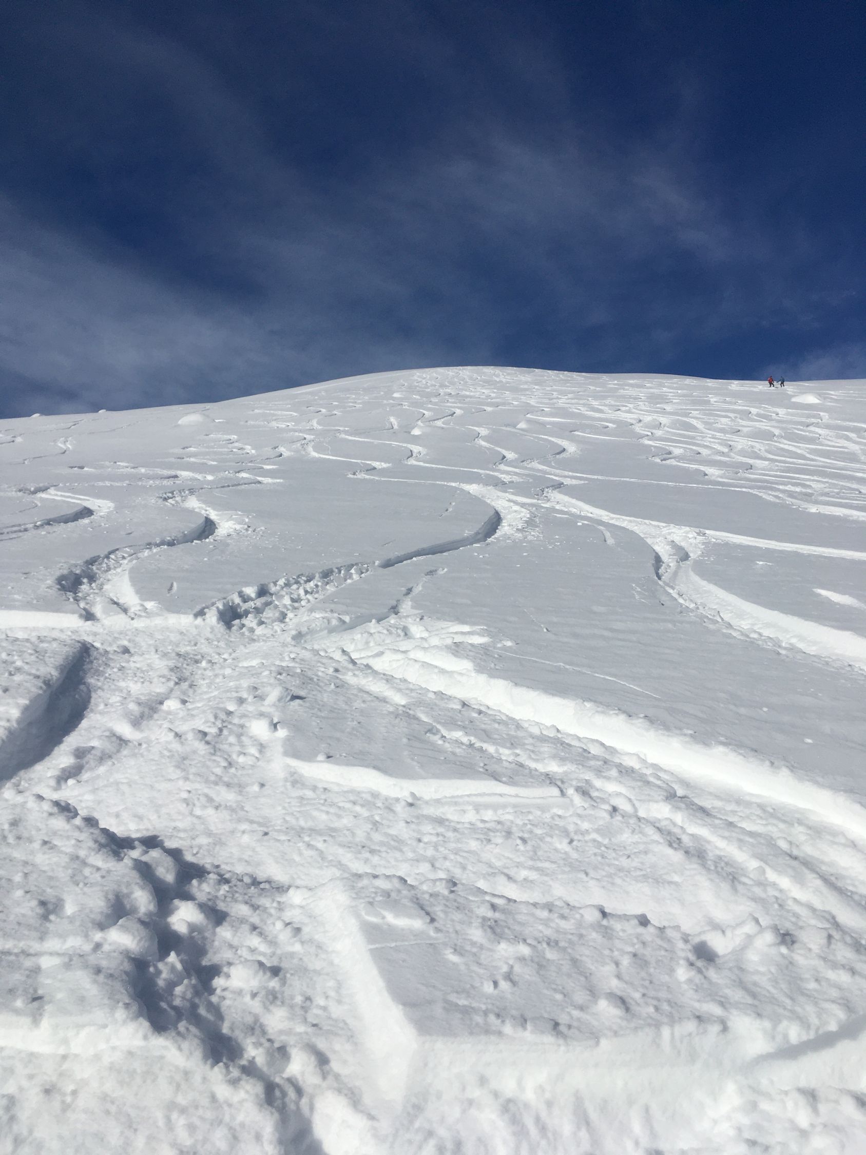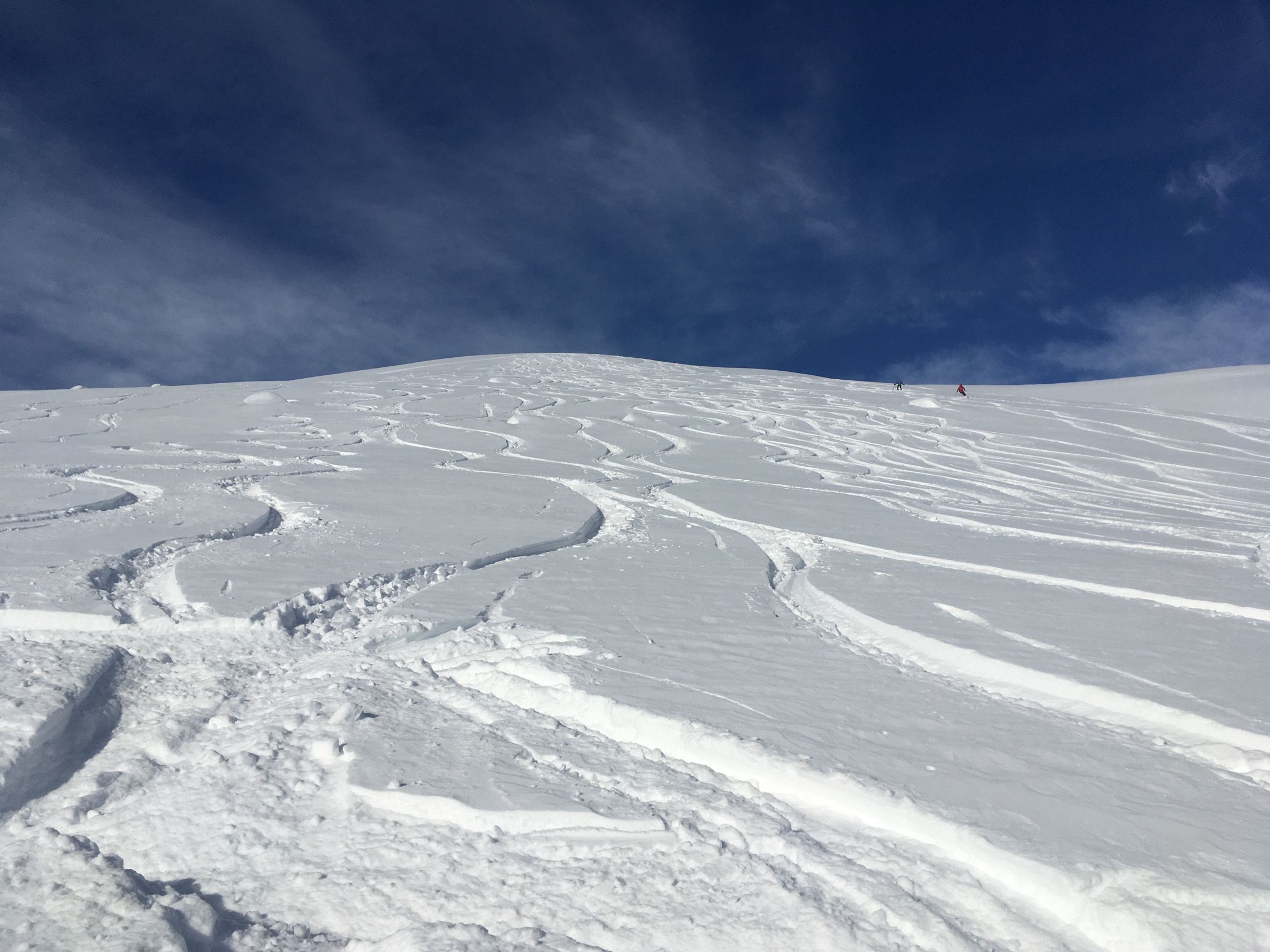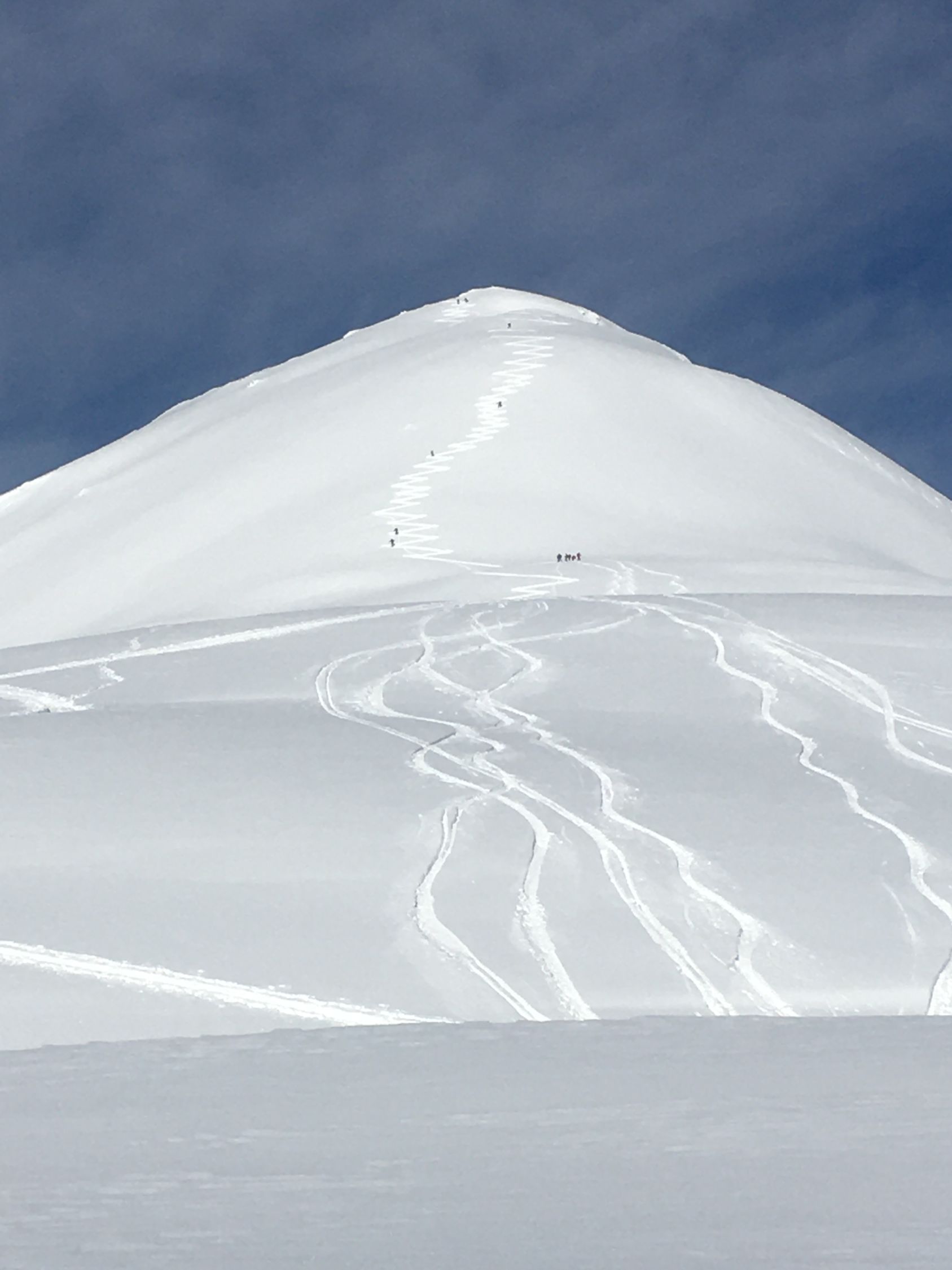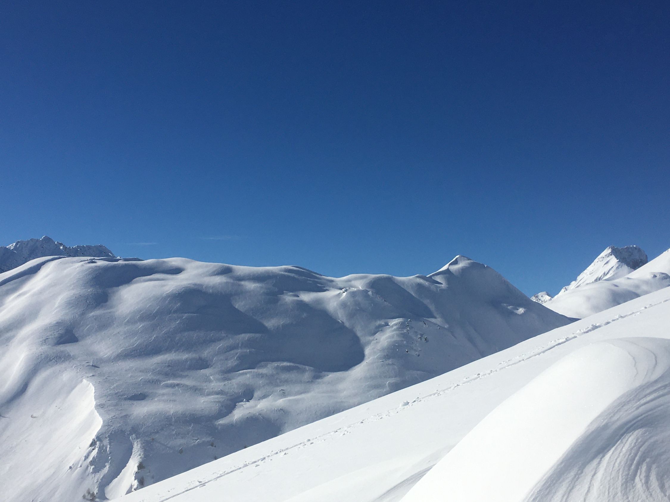 Perfekte Neuschneetour auf den attraktiven Berg mit langer nicht zu steiler Südostflanke. Start Bahnhof Madulain 8.30 Uhr, minus 20 Grad, windstill. Mich haben sicher über 25 Italiener überholt, halb Lecco war hier unterwegs. Dadurch konnte ich von der guten Spur profitieren Richtung Piz Belvair. Ein teil der zahlreichen Skitourengänger begnügten sich mit der Alp Belvair, einige gingen wie ich bis Punkt 2483 und Punkt 2560, einige stiegen bis zum Gipfel hoch. Der Neuschnee, ca. 50 cm, hat sich gut gesetzt so dass der Gipfelaufstieg zu verantworten war. Die lange Abfahrt mit dem vielen Neuschnee war toll aber kräftezehrend, es gab grosse Gräben. Die Abfahrtsroute über Chamaduors und Spinas war spektakulär, alles perfekt eingeschneit.