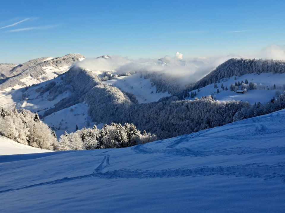 Frühstart um 8.45h. Noch fast alleine unterwegs. Bei der Talstation ca 15 cm Schnee mit Unterlage. Am Gipfelhang ca 40 cm. Schönster Pulver. Waldstück gar nicht so übel. Skihütte beim Gipfel geöffnet. Vom Gipfel zuerst Abfahrt nach Grossi Rotmatt 1000 müm und nochmals anfellen. Abfahrt tiptop bis zur Talstation.
