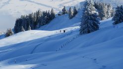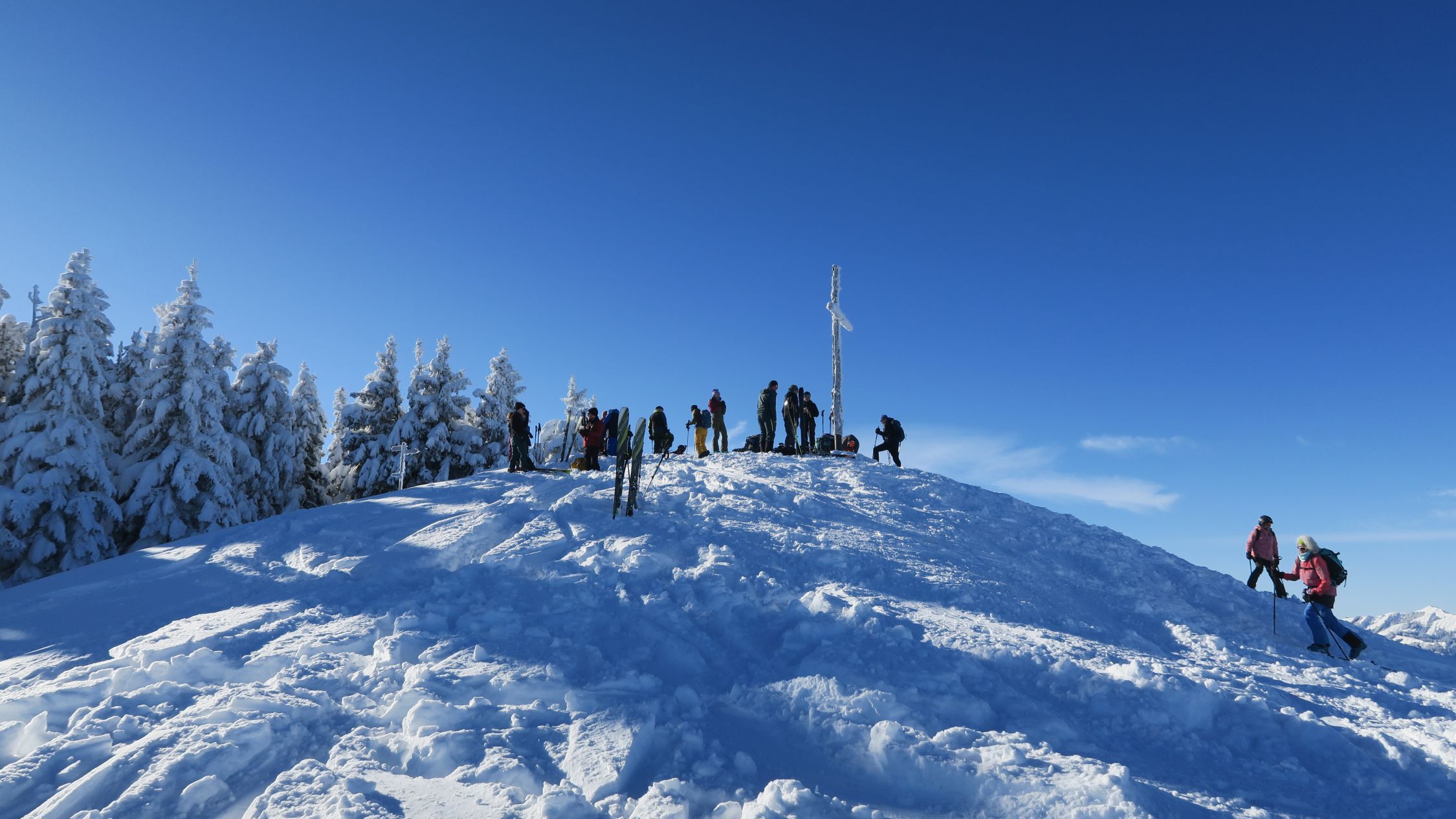 Wie erwartet war ein reger Betrieb am Gipfel. Die Schneeverhältnisse waren nicht schlecht, allerdings fehlte die Unterlage.
