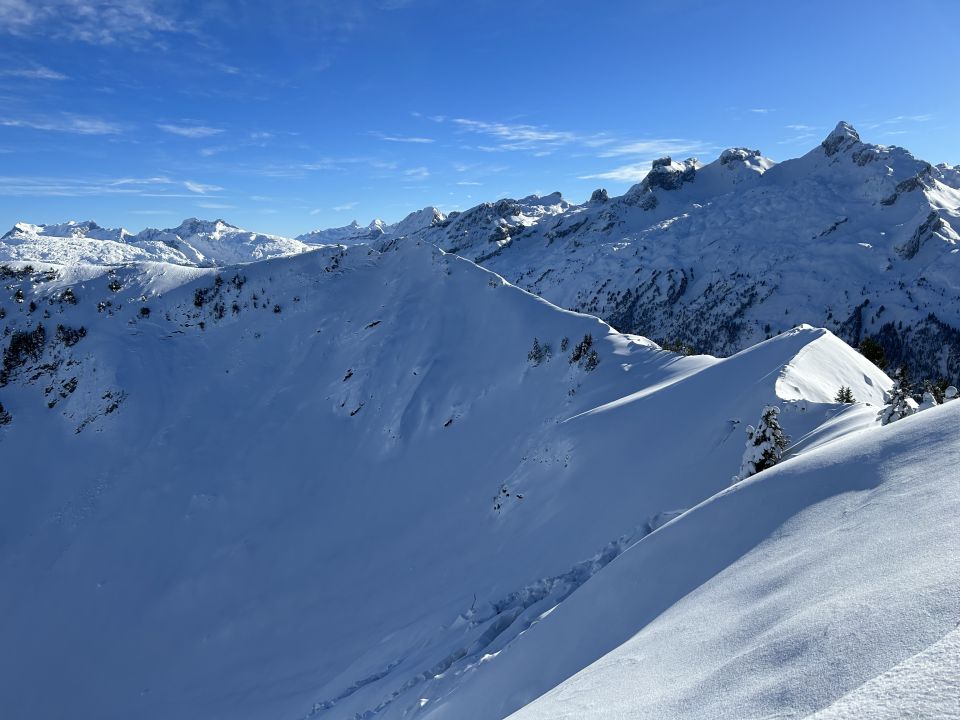 Beste Verhältnisse! So gute Verhältnisse hatte ich effektiv schon lange nicht mehr auf einer Tour gehabt. Durchgehend leichter, trockener Pulver, sogar in den Südhängen nach dem Wannentritt. Ich musste heute alles spuren, der Aufstieg zum Sisiger Spitz war eine ziemliche Wühlerei. Zum Abfahren dann allerdings umso besser.Auf den untersten 200hm hart/Bruchharst, aber immerhin mit den Skis bis runter.