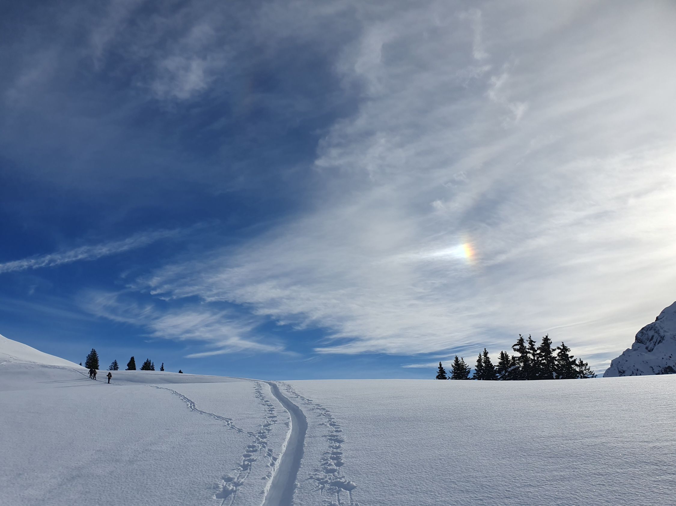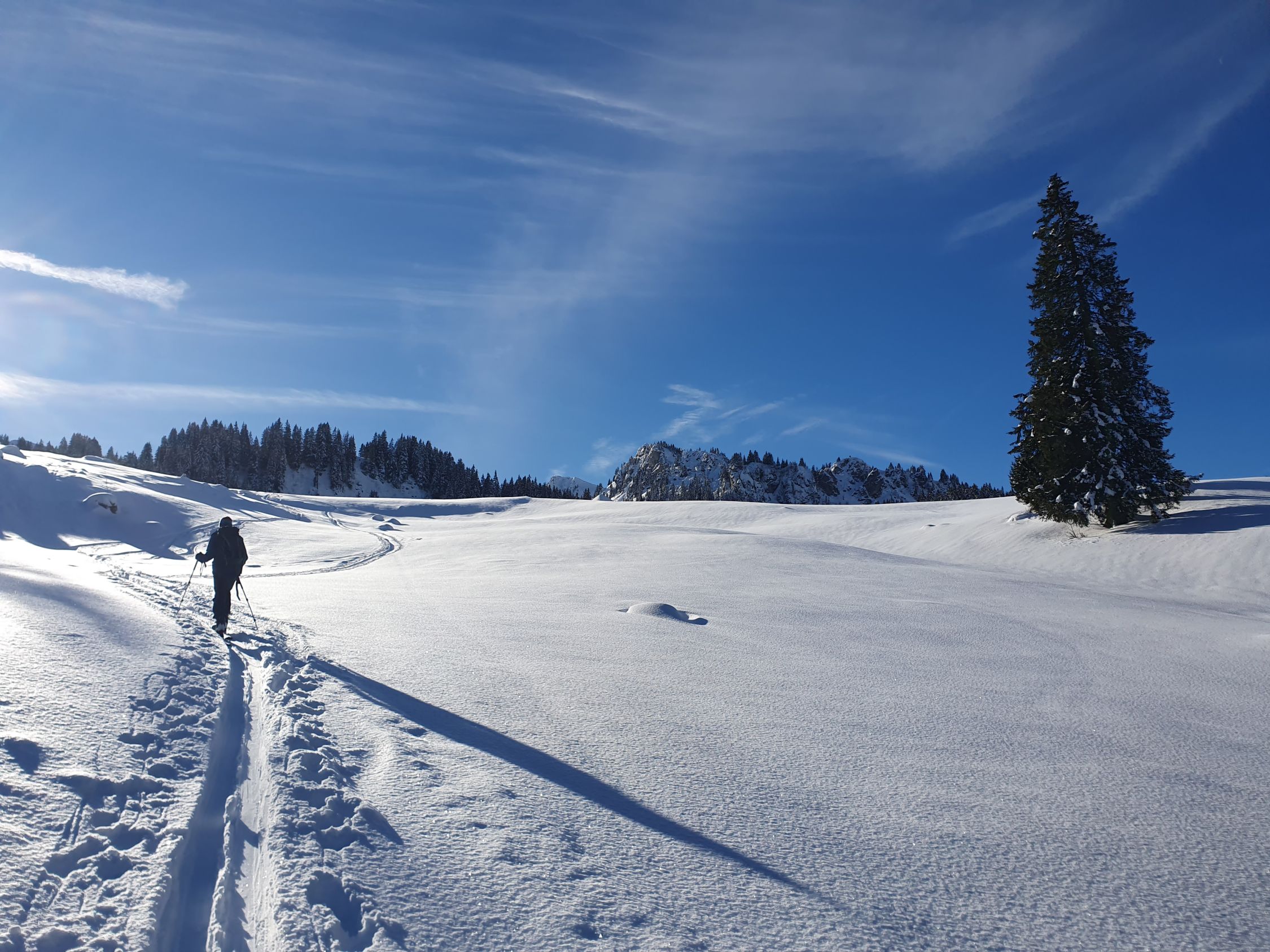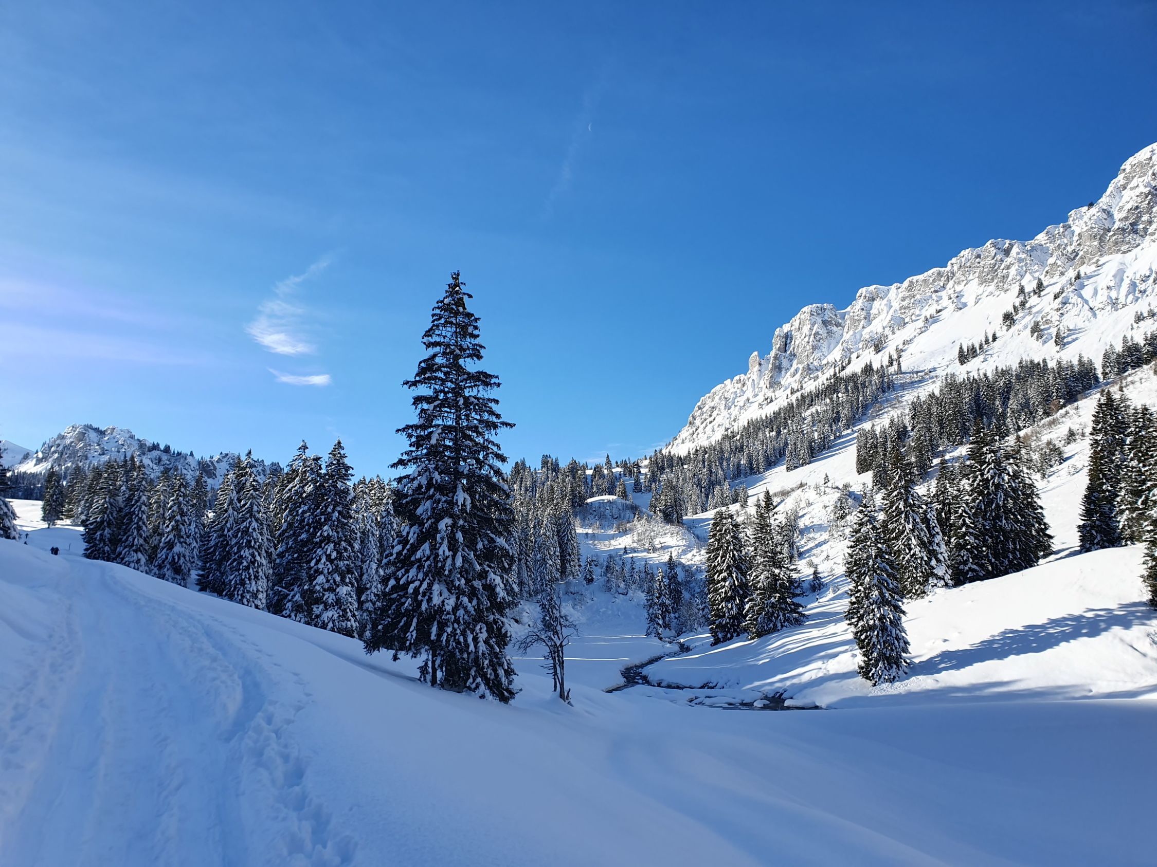 Im Moment noch sehr viel Schnee im Gebiet, auch unten beim Parkplatz.
