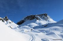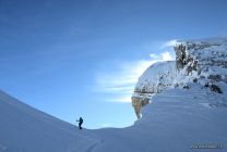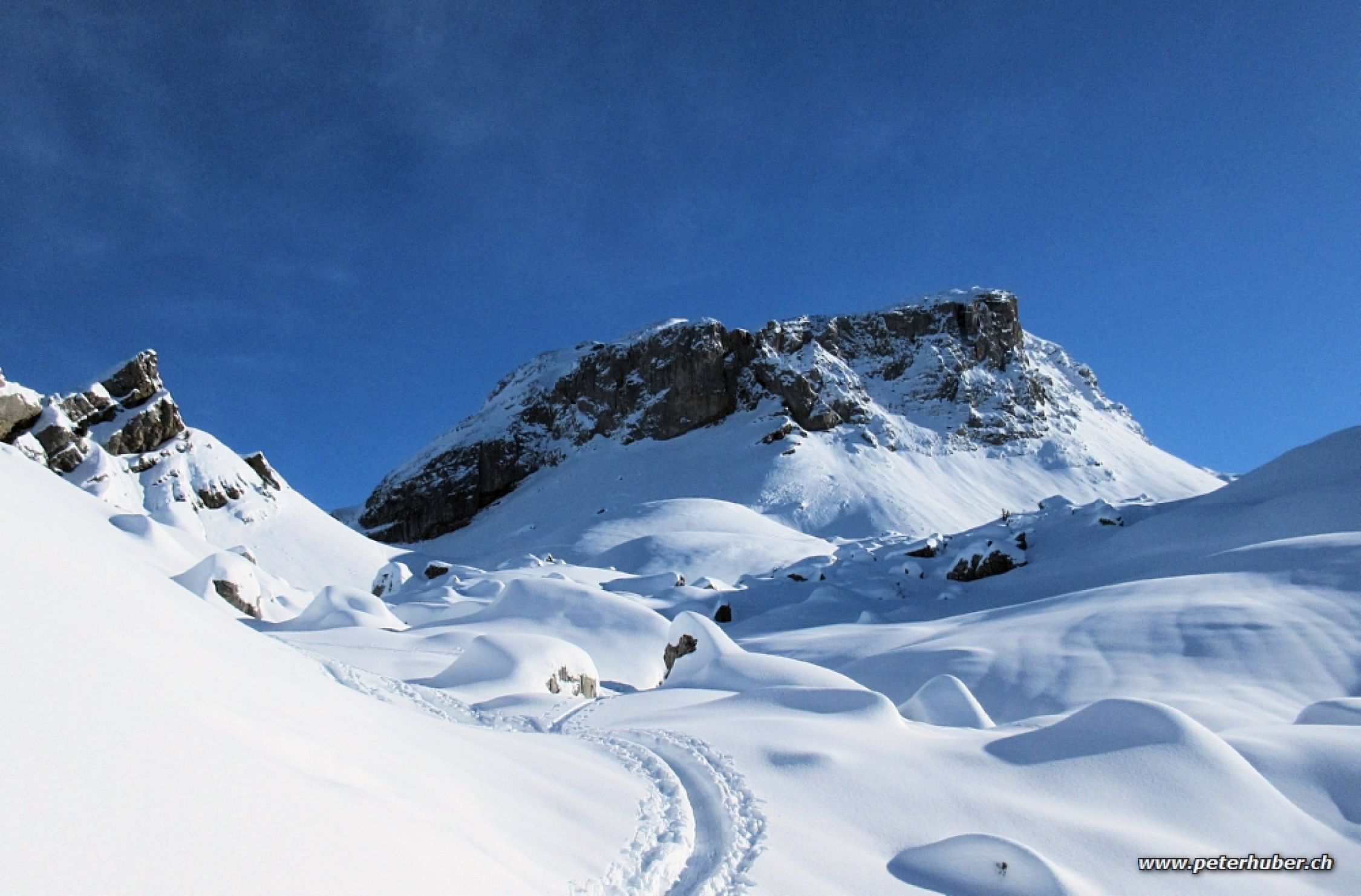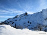 Strahlend schönes Wetter. Lange im Schatten, da war es recht kalt. In der Sonne und auf dem Gipfel angenehm. Es hat ca. 15 cm Neuschnee aus den letzten Tagen auf solider Unterlage. An den Graten stellenweise windgeprägt.