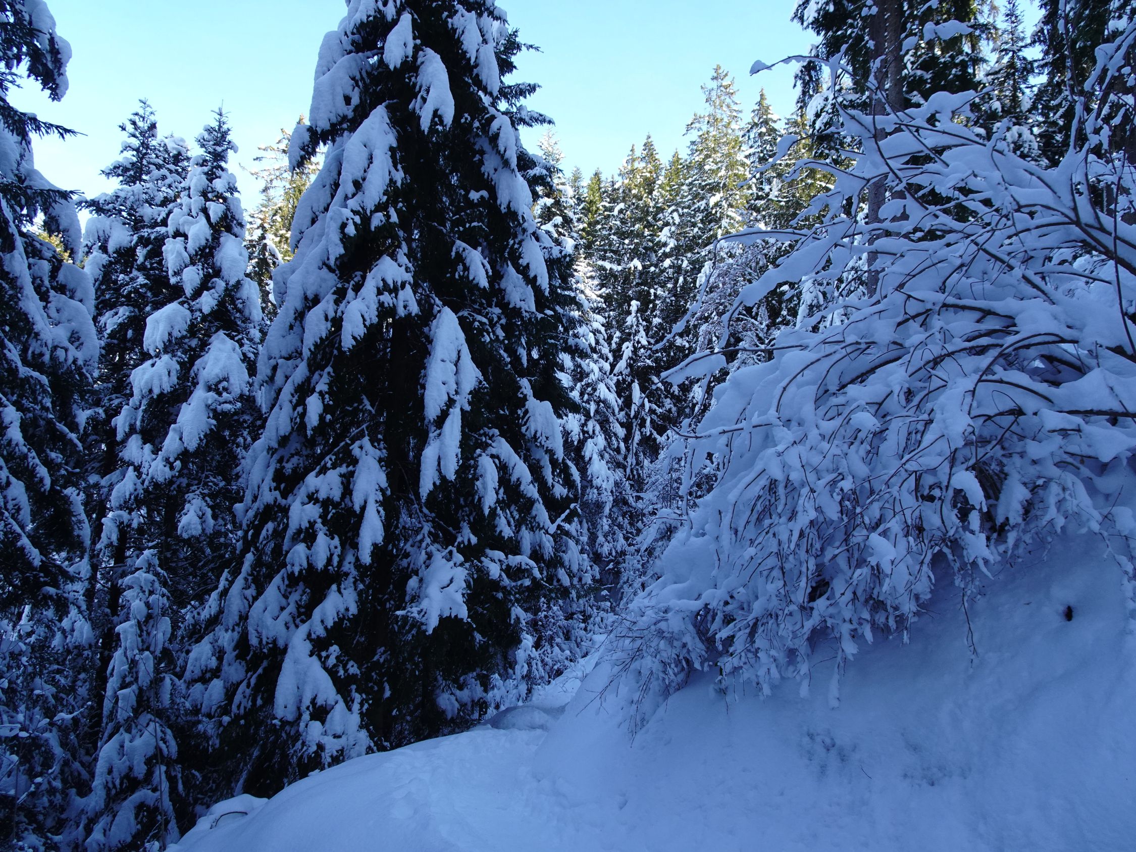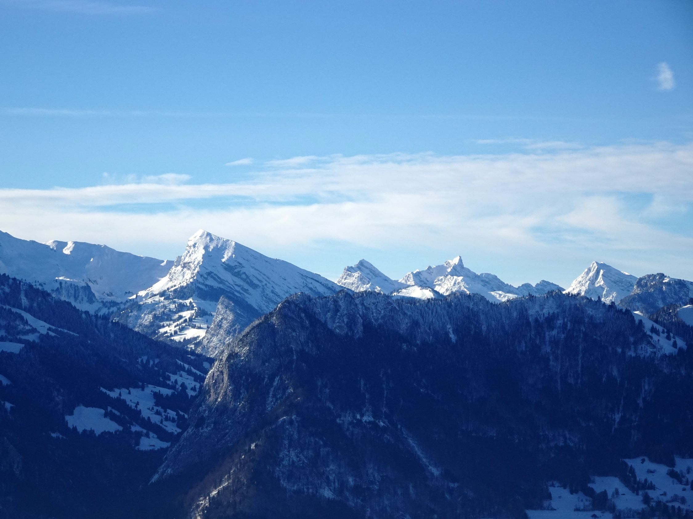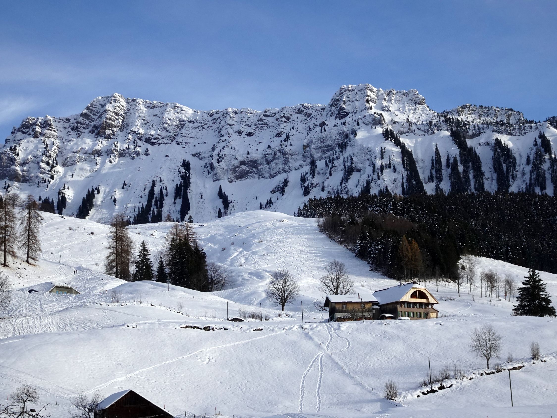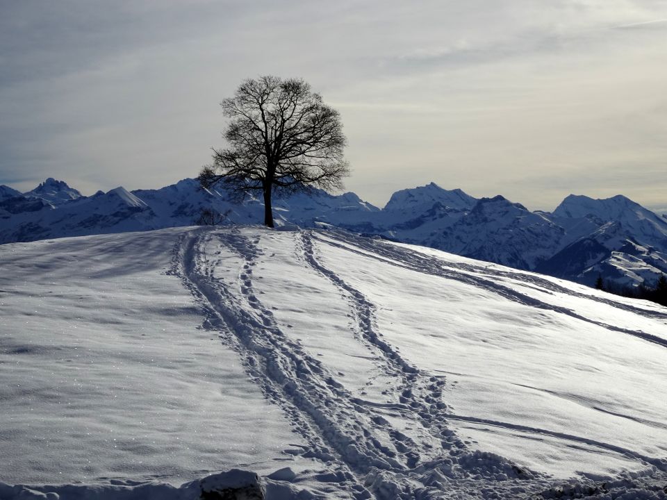 Anmerkung: wir haben als "Vorspeise" den Weihnachtsweg von Heiligenschwendi gemacht. dort war der Schnee auf dem Weg durch die vielen Besucher der letzten Tage stark gepresst und zum Teil rutschig. Wir haben die (Grampini), nennt man si so? geschätzt und siicherheitshalber , bei kleineren Unterbrüche bis Schwanden Säge benutzt. Ohne ging es auch, aber etwas mühsamer.. Die Wanderstöcke waren ebenfalls hilreich. Fazit : Wer gute Schuhe hat und gut zu Fuss ist, kann, abgesehen von manchen Wackeleinlagen, gut durchkommen.