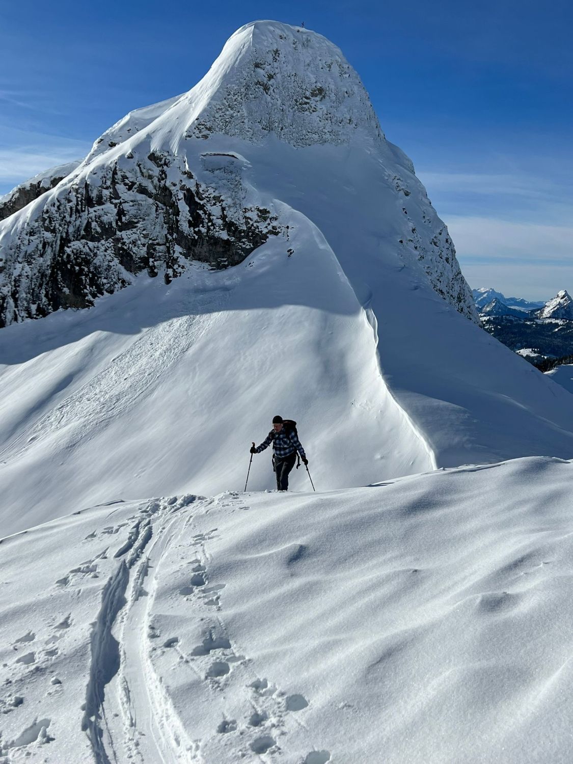 Pulver von oben bis unten, fünf Leute haben vor uns frisch gespurt (merçi?) was uns erlaubte in 2 1/2h auf dem Gipfel zu sein