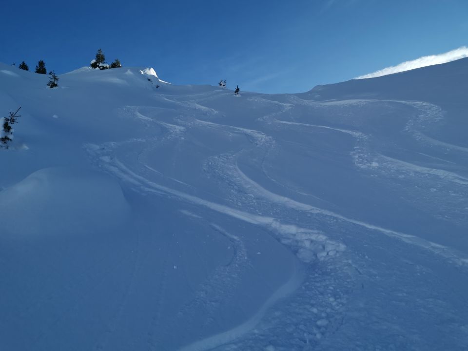 Start um 8 Uhr bei - 10 Grad. Die ganze Route ist perfekt eingeschneit. Ab den Alphütten eingangs Wildgrimmi toller Pulverschnee bis oben (30-40cm).