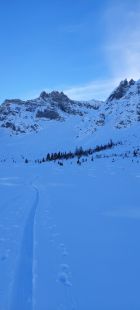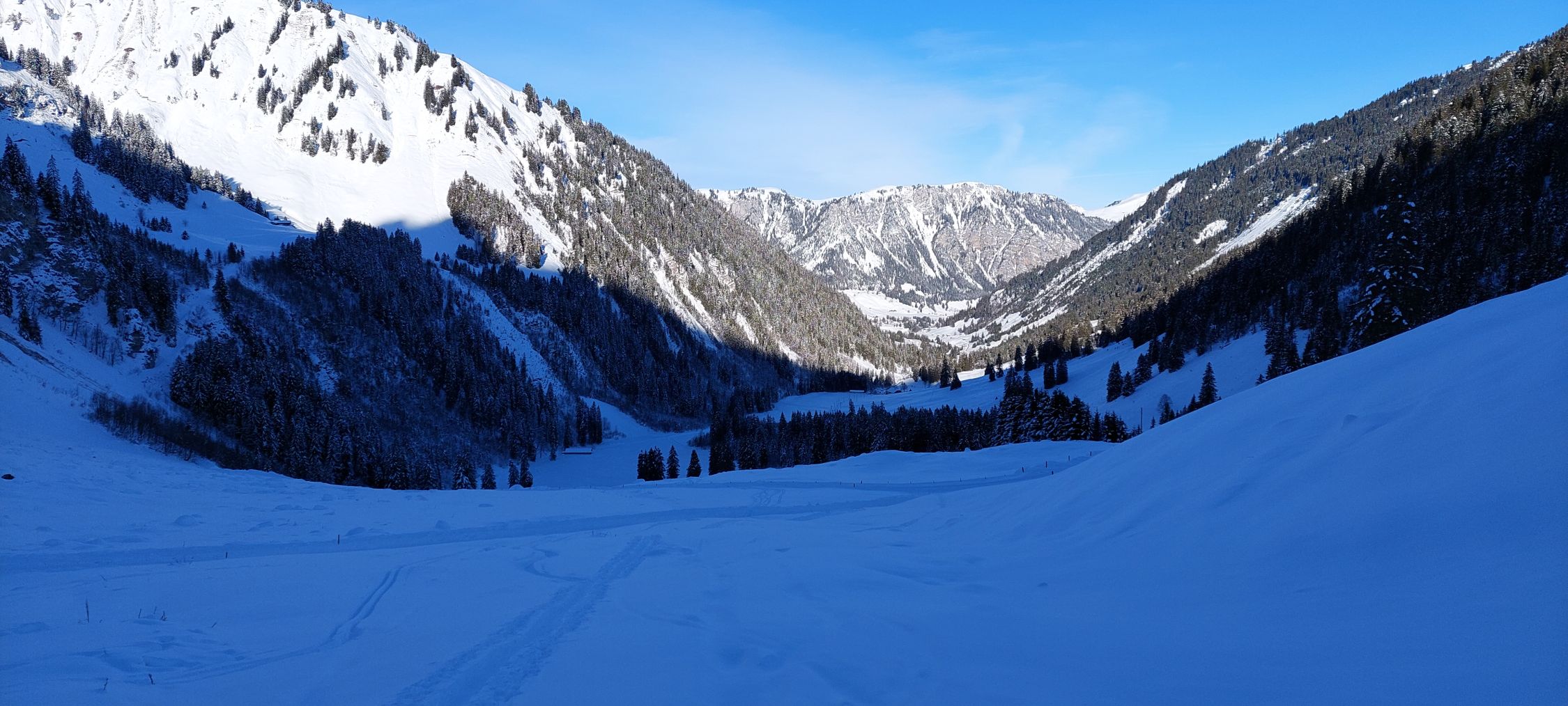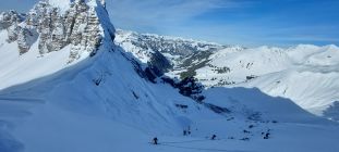 Abfahrt: Vom Landvogtehore bis zum Pass hat es gesetzten Pulver, ist aber gut fahrbar. Ab dem Pass bis zum Parkplatz fährt man alles in fantastischem Pulver. Der Steibode ist gut eingeschneit. Ganze Tour ohne Steinkontakt. Es hatte schon lange nicht mehr so gute Schneeverhältnisse am Landvogtehore.