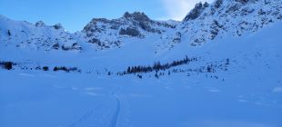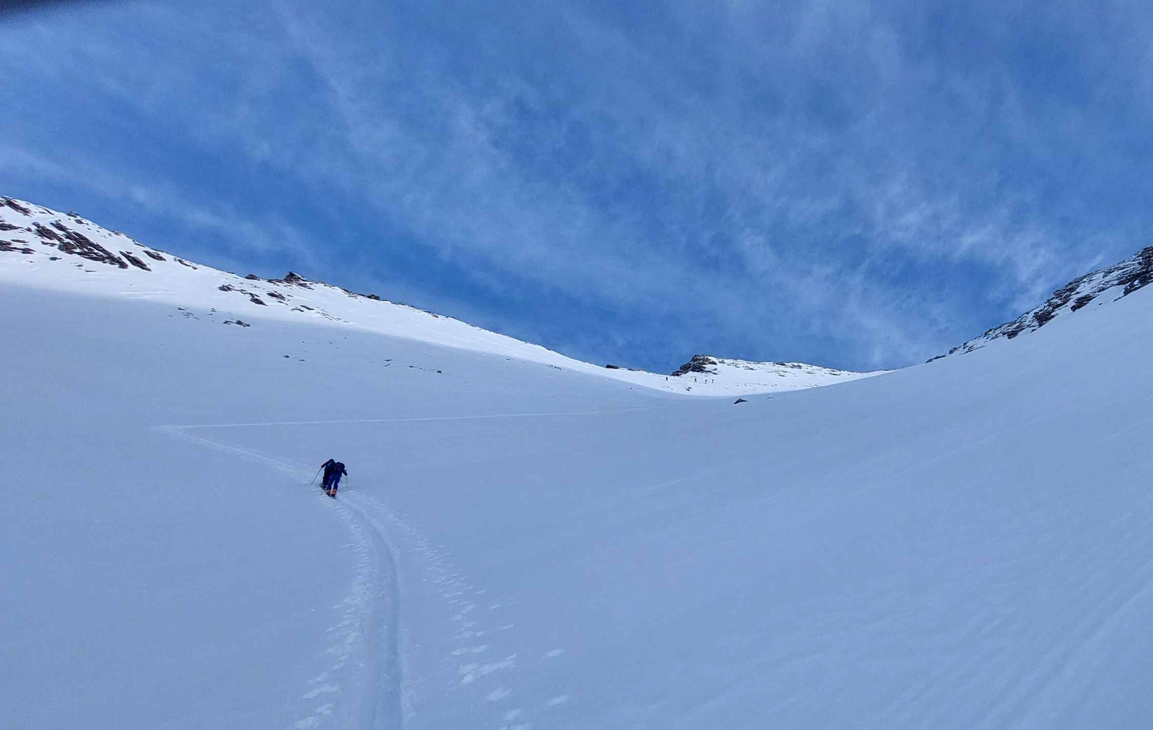 Aufstieg: Ab Parkplatz Richtung Steiboden hat es 20 – 30cm Pulver auf gesetzter Schneeunterlage. Durch den Steilhang Richtung Landvogtehore steigt der Pulveranteil auf bis zu 40cm an. Die letzten 50 Hm sind problemlos mit den Skis machbar. Vom Pass bis zum Gipfel hat sich der Schnee durch die Sonneneinstrahlung gesetzt.