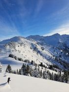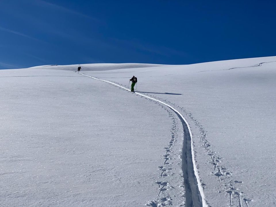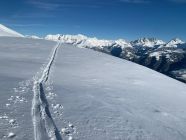 Sehr guter Schnee im Gebiet, (auch Fadeuer) westseitig ganz leicht vom Wind bearbeitet aber trotzdem sehr schön zum Fahren!