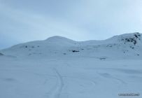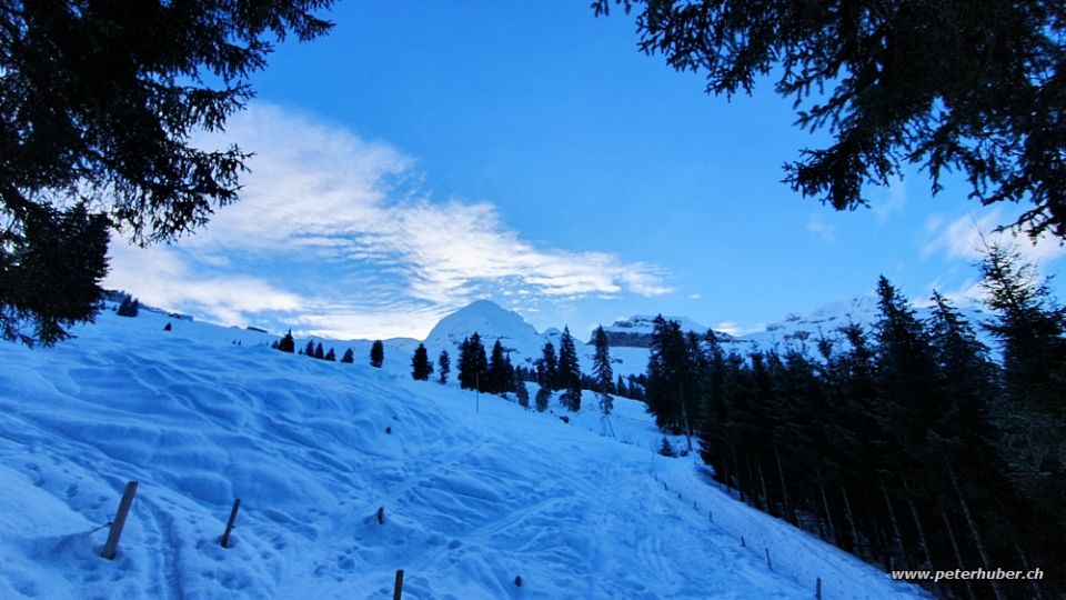 Aufstieg auf recht hart gefrorenem Schnee. Der erste Steilhang bei Laueli war stellenweise eisig rutschig. Ab ca. 1600 m gab es ca. 10 cm Neuschnee auf viel bisherigem Schnee. Mit guter, recht direkter Spur zum Gipfel. Dann rasch in die Abfahrt da dunkle Wolken von Westen heranzogen.
