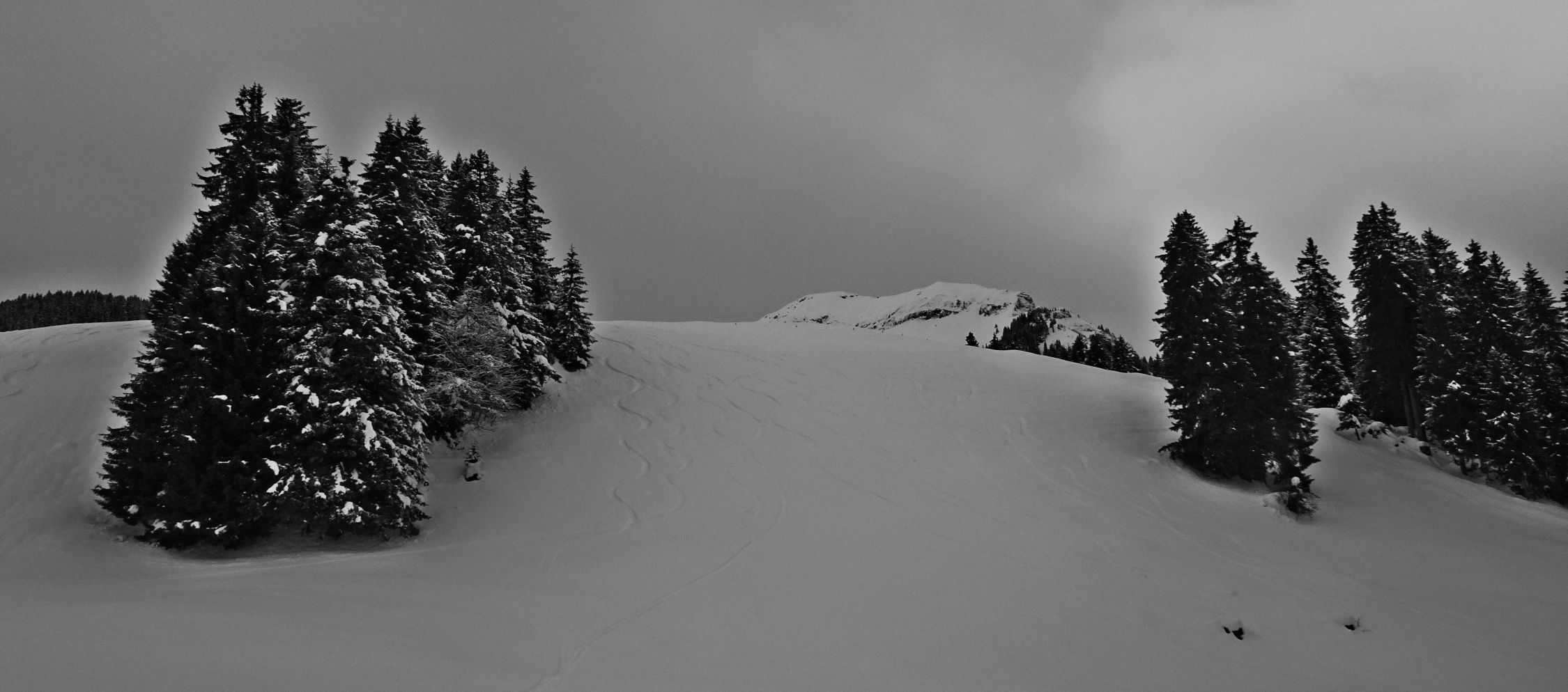 Die Verhältnisse waren am frühen Morgen erstaunlich gut. Ab dem Schwarzenberg (ca. 1300 müM) hatte es Pulverschnee. Leider hat sich das Wetter verschlechtert und die Sicht wurde schlecht.
