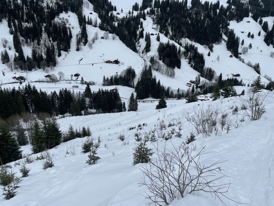 Ein überzeugtes machbar, das sich aus einem gut für den Aufstieg und einem schlecht für die Abfahrt zusammensetzt. Start um 12.00 bei 2 Grad und bewölktem Wetter, im Laufe des Aufstiegs Aufhellungen. Daher schön zu gehen, allerdings schon mit unguten Ahnungen betreffend der Abfahrt. Es war überall eine Regenkruste, und entgegen meinen Hoffnungen zog sich diese bis zum Gipfel hoch. Die Abfahrt war dann eigentlich keine solche, sondern ein Runterwürgen im Bruchharst. Wenn man das wunderbare Skigelände dieser Tour kennt, tat einem das beinahe körperlich weh. Nicht mal Fädimän hätte da eine schöne Spur hingekriegt… so bleibt auf der Positivseite, vor der angekündigten Sintflut nochmal eine Tour gemacht zu haben und gesund wieder runtergekommen zu sein. Für mich ok so, den tollen Verhältnissen der letzten Woche hinterherzutrauern macht keinen Sinn.