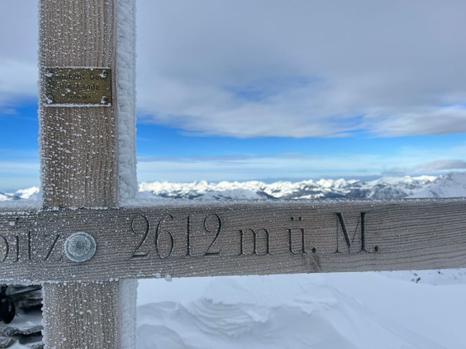 Es hatte mehrheitlich Presspulver mit einigen abgeblasenen, eisigen Stellen. In den Muldenlagen konnte man schöne Schwünge machen. Die Sicht war eher "blind".