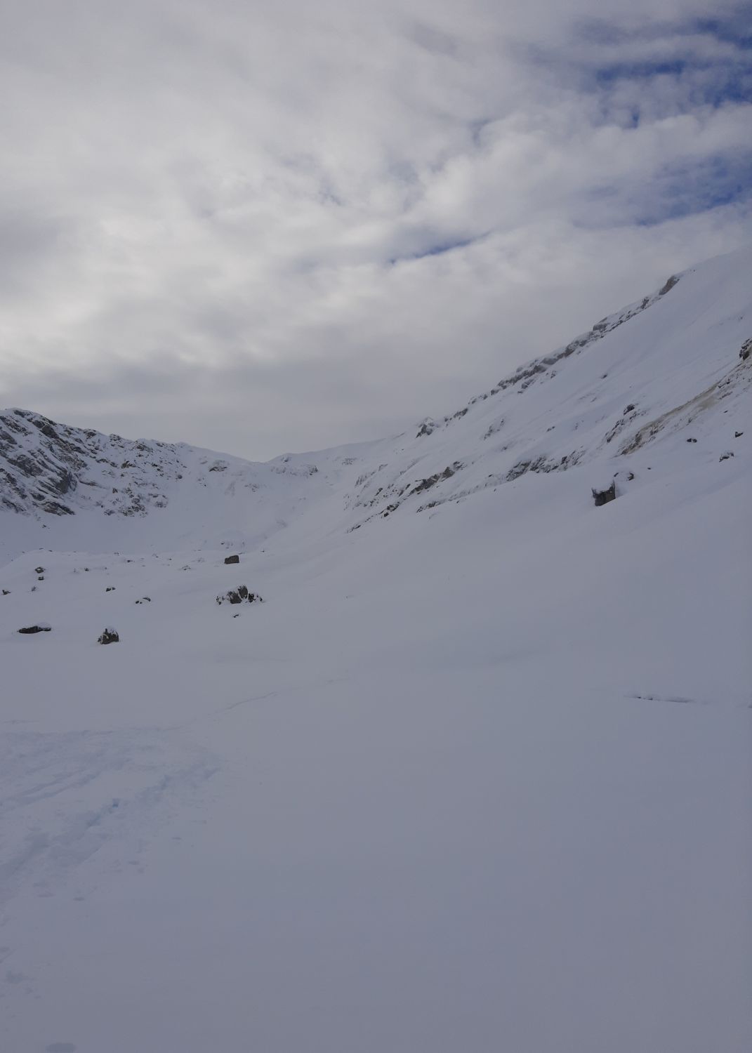 Es gabe zwei Lawinenkegel von Nord und Süd welche bei ca. 2200müM bis zur Aufstiegsspur reichten (habe ich so hier noch nie gesehen).