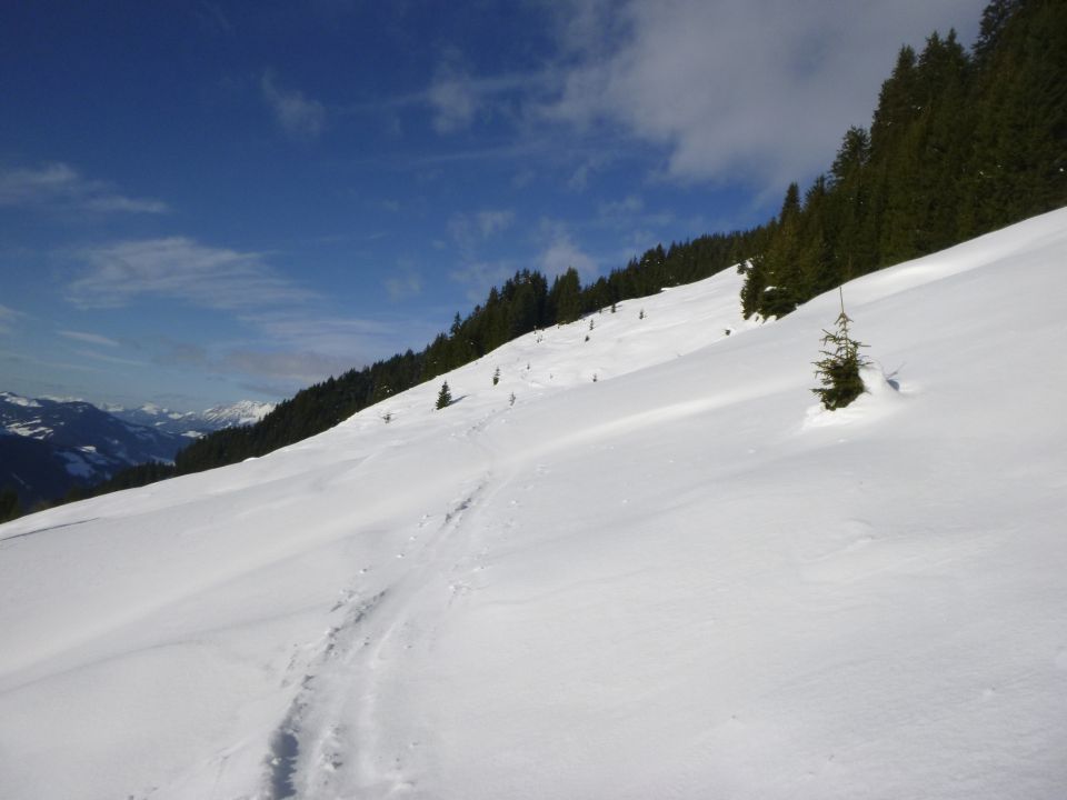 Tourenbeginn um 13:00 Uhr bei 3°C an der Bochumer Hütte im Anschluss von unserer Tour zum Gamshag bei aufklarendem Wetter. Am Gipfelrücken wehte frische NW-Brise. Abfahrt dann gegen 17:00 Uhr von der Hütte mit dem Schlitten über die Rodelbahn nach Grüntal.
