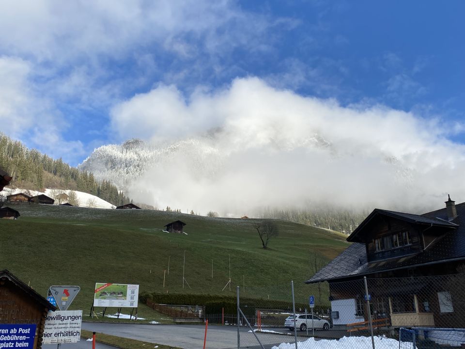 Pulver von oben bis unten. Selbst die Strasse zum Braetliplatz ist gut eingeschneit.