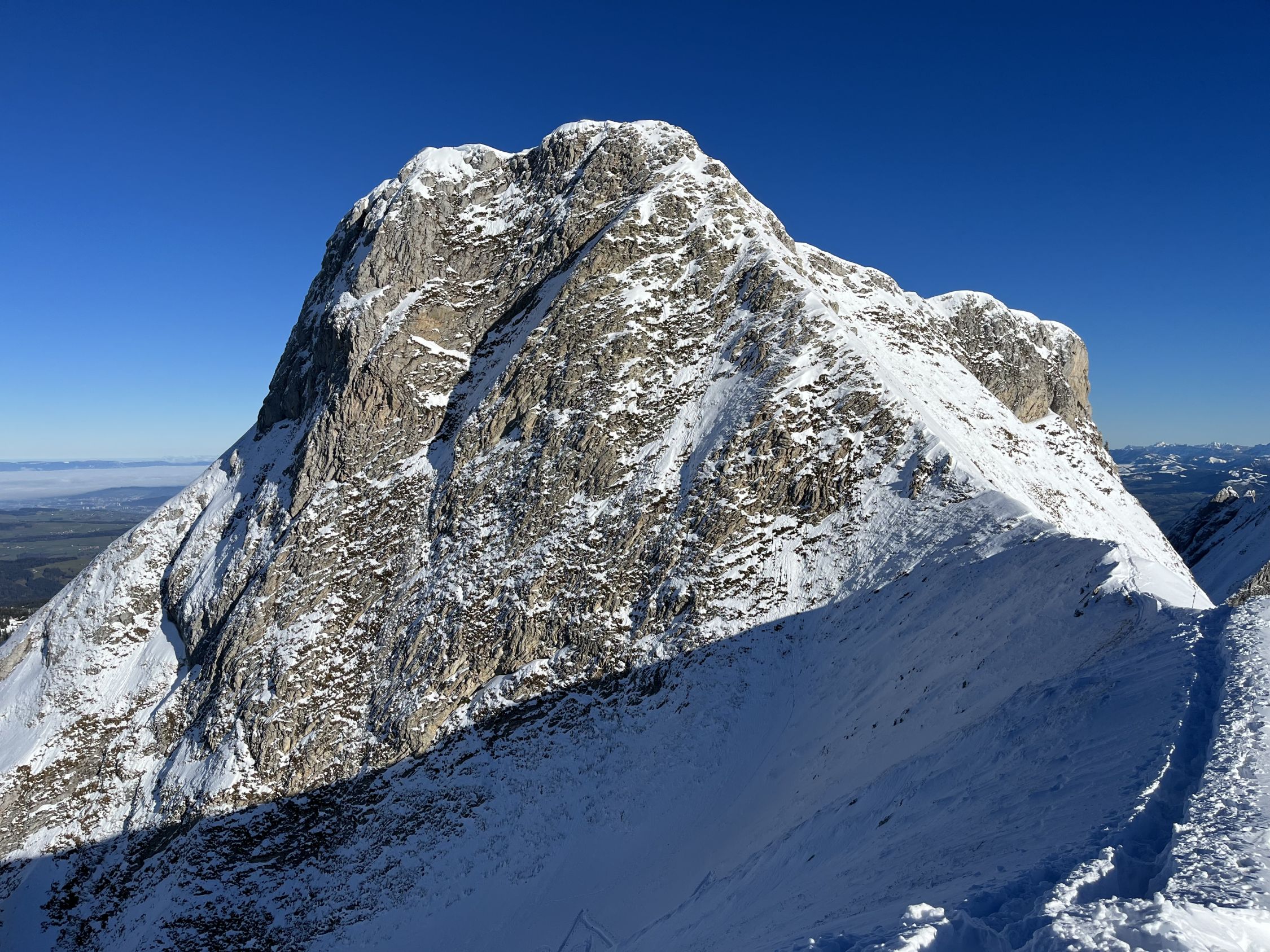 Schlussaufstieg zum Gantrisch ungespurt, ziemlich abweisend (Steigeisen ratsam).