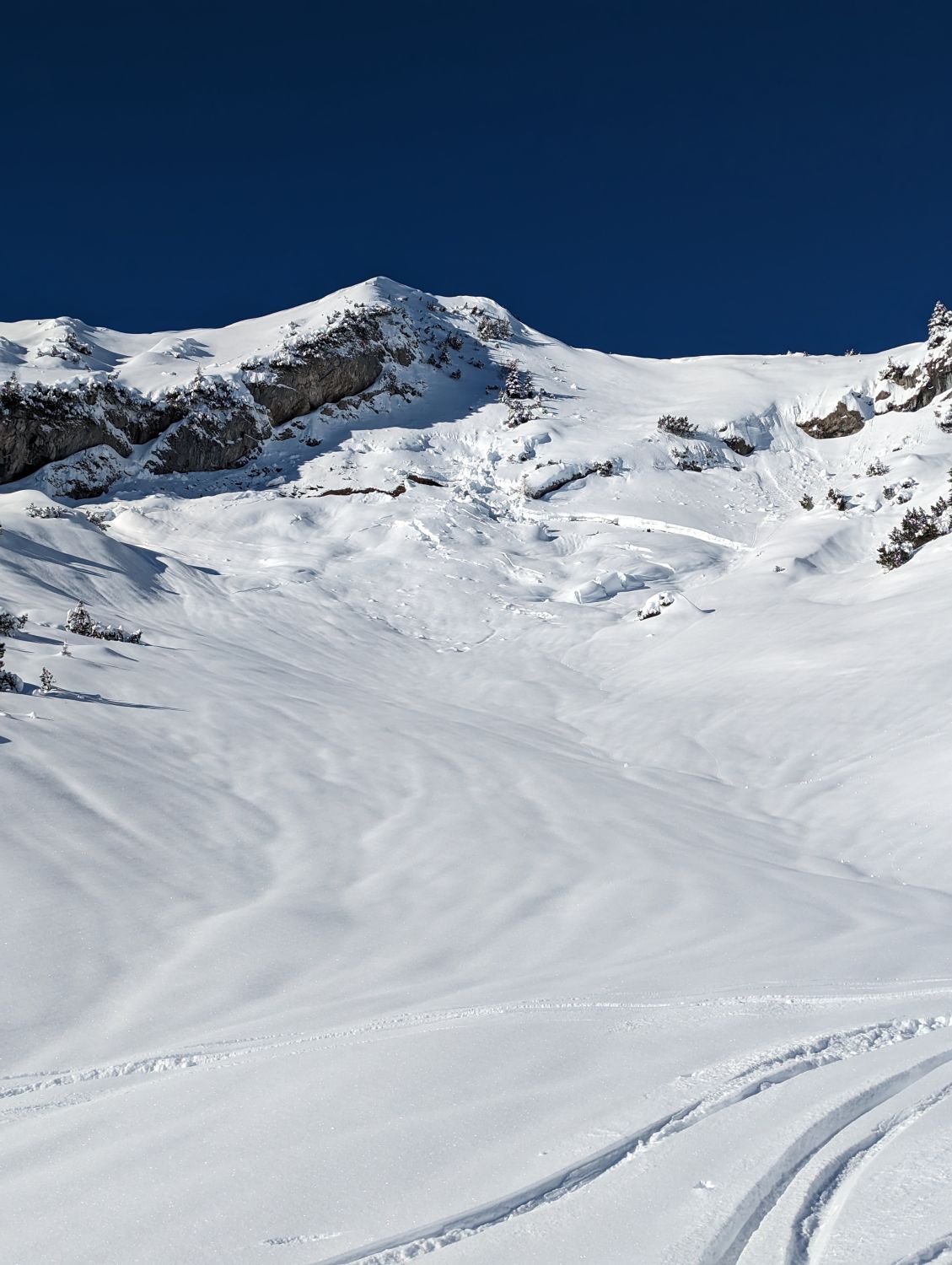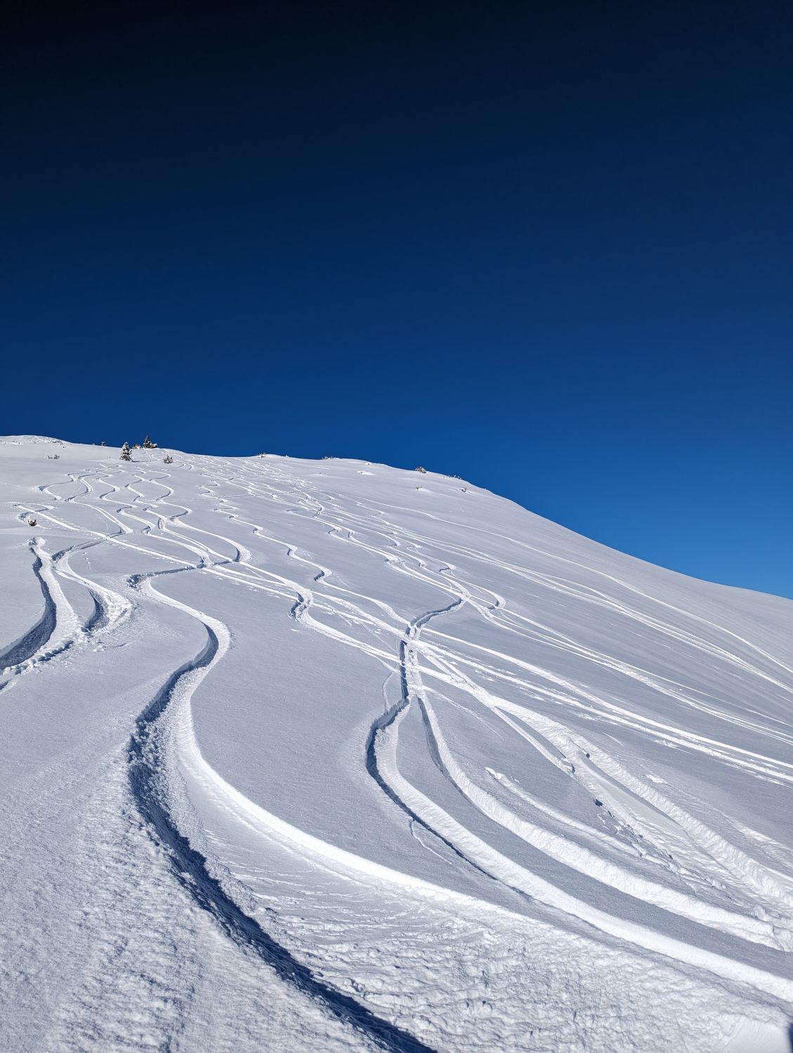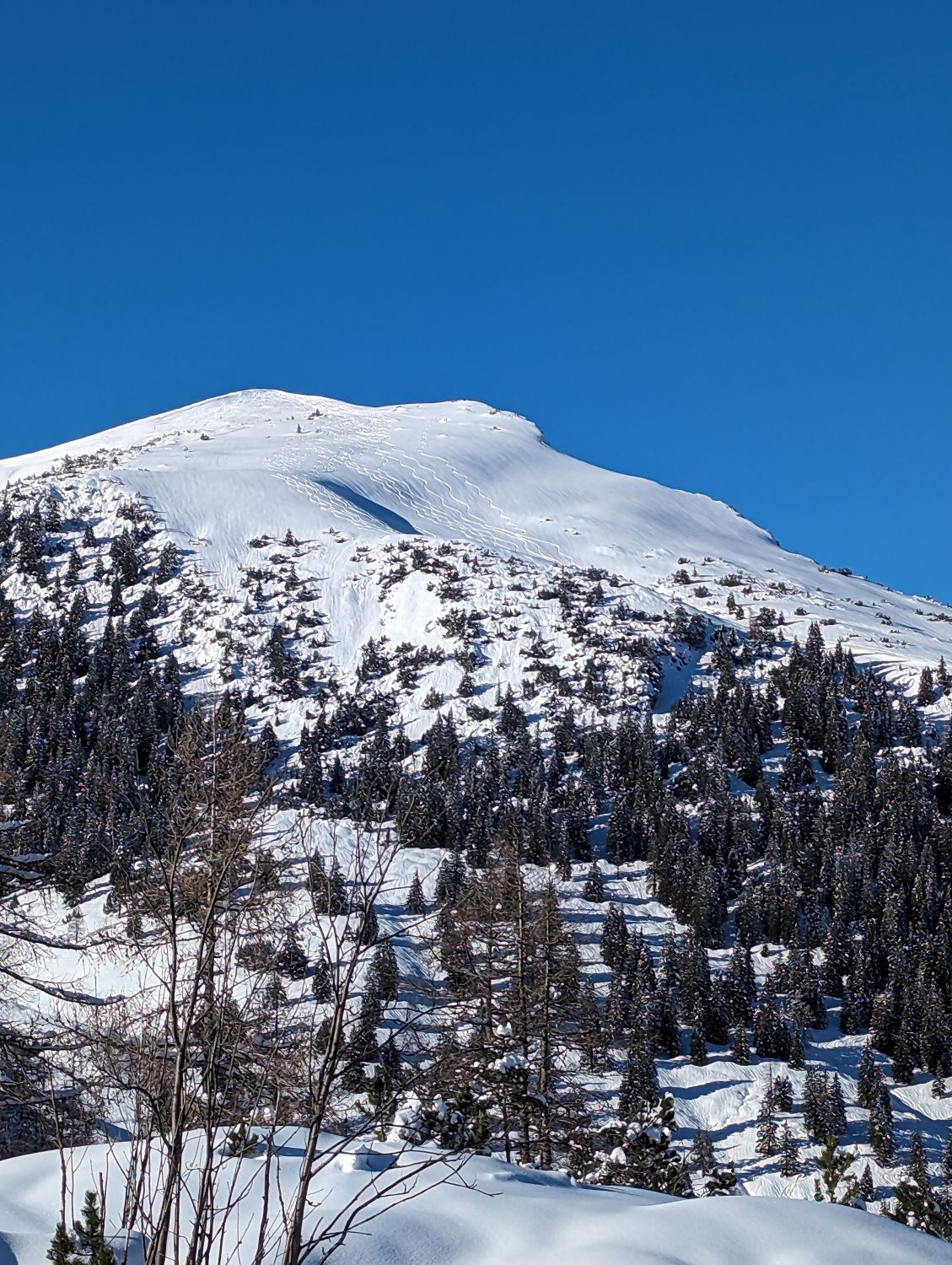 Heute einfach alles super! Überall ausreichend Schnee mit super Schneeverhältnisse. Keine Wolke am Himmel. Wir sind am Gipfel nicht entlang der Aufstiegsspur und hatten eine lange kaum verspurte Abfahrt. Super Winter bisher :)