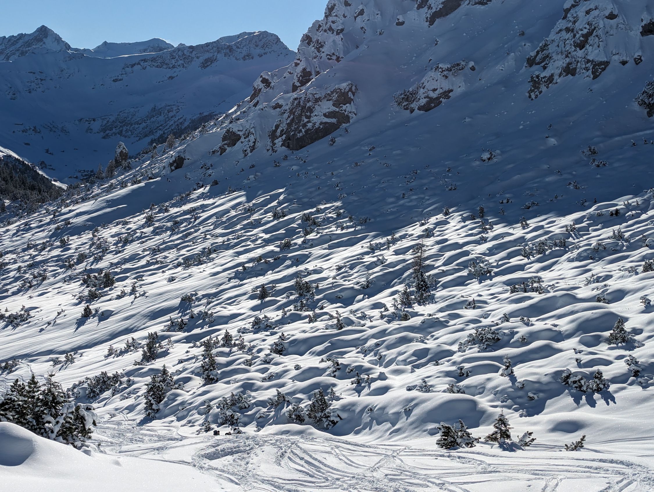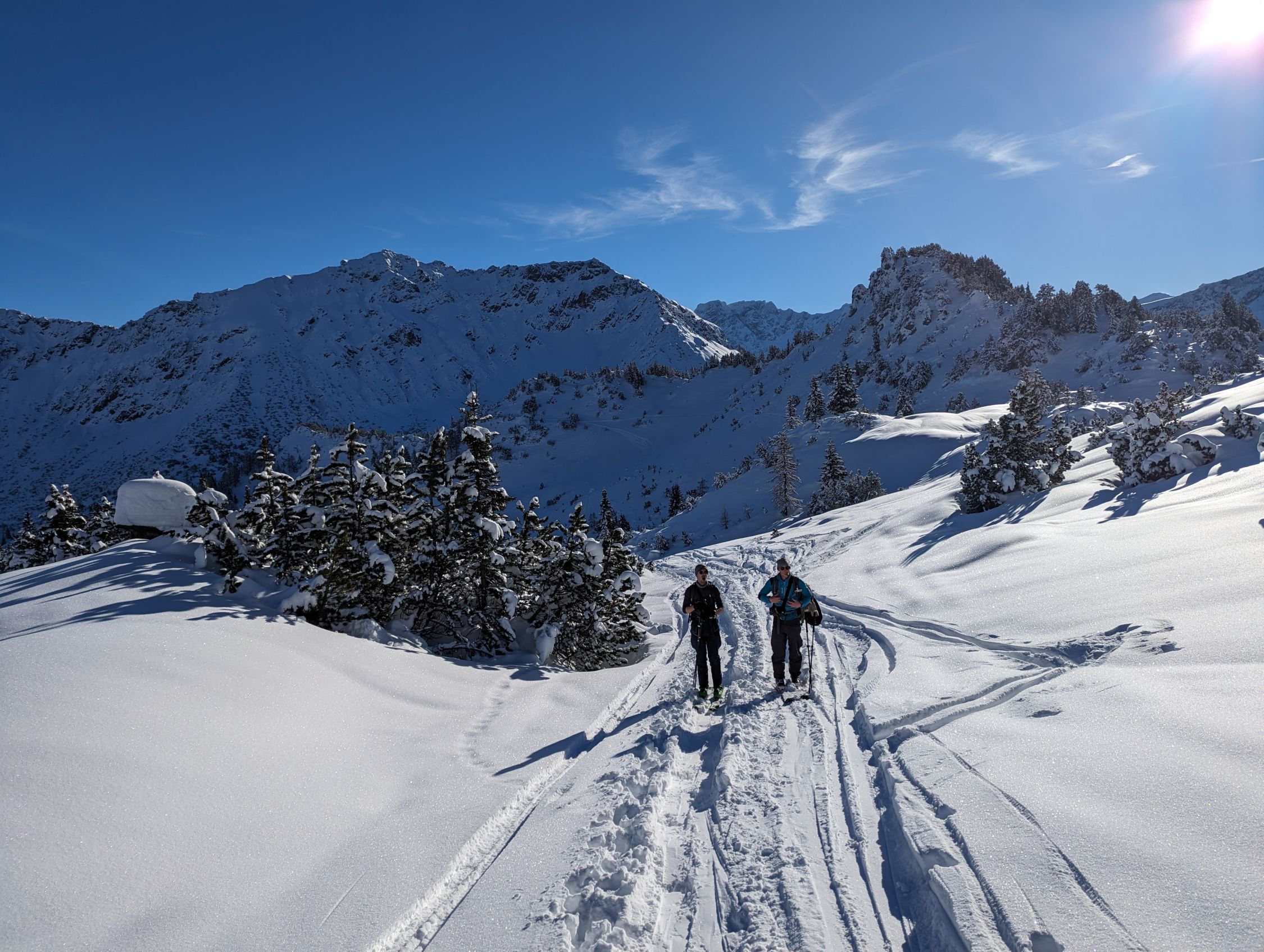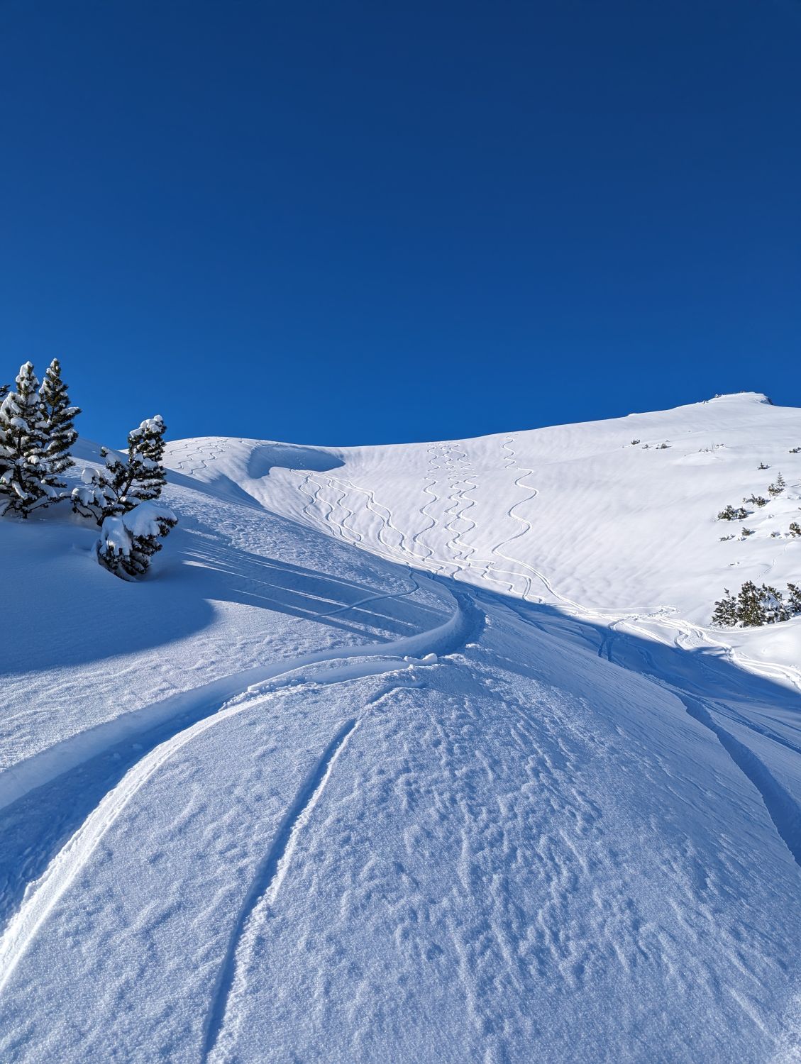 Heute einfach alles super! Überall ausreichend Schnee mit super Schneeverhältnisse. Keine Wolke am Himmel. Wir sind am Gipfel nicht entlang der Aufstiegsspur und hatten eine lange kaum verspurte Abfahrt. Super Winter bisher :)