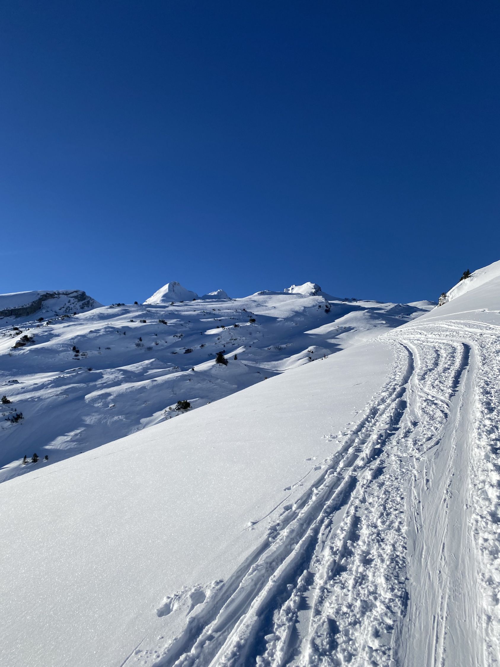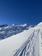 Bestes Wetter und tolle Schneebedingungen. Größte Herausforderung ist um 9 Uhr der bereits voll belegte Parkplatz beim Berghaus Malbun. Für morgen sollte man schon früh losstarten oder gegen Mittag losziehen, wenn die ersten schon wieder zurück sind. Gute Aufstiegspur. Abfahrt bietet heute trotz der wirklich vielen Tourengeher noch viel Platz für eigene Schwünge im Tiefschnee. Von solch einem Wintertag hat man letztes Jahr um diese Zeit nur träumen können :-)