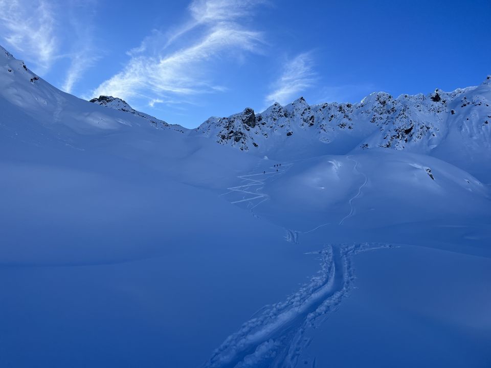 Um 09.15 Uhr gestartet. Nicht mehr viele Parkplätze frei. Die ganze Aufsiegsroute war aber noch im Schatten. Sehr gute Spur bis auf den Gifpel. Abfahrt perfekt. Pulverschnee vom feinsten. Soweit ich es beurteilen kann sind die meisten Gipfel in Sankt Antönien nun eingespurt.