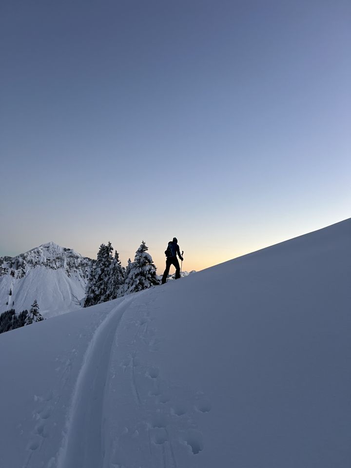 Beim Gipfel ist die „Blüemberglawine“ vermutlich tags zuvor abgegangen und hat einen grossen Teil des Gipfelhanges ein wenig in Mitleidenschaft gezogen.