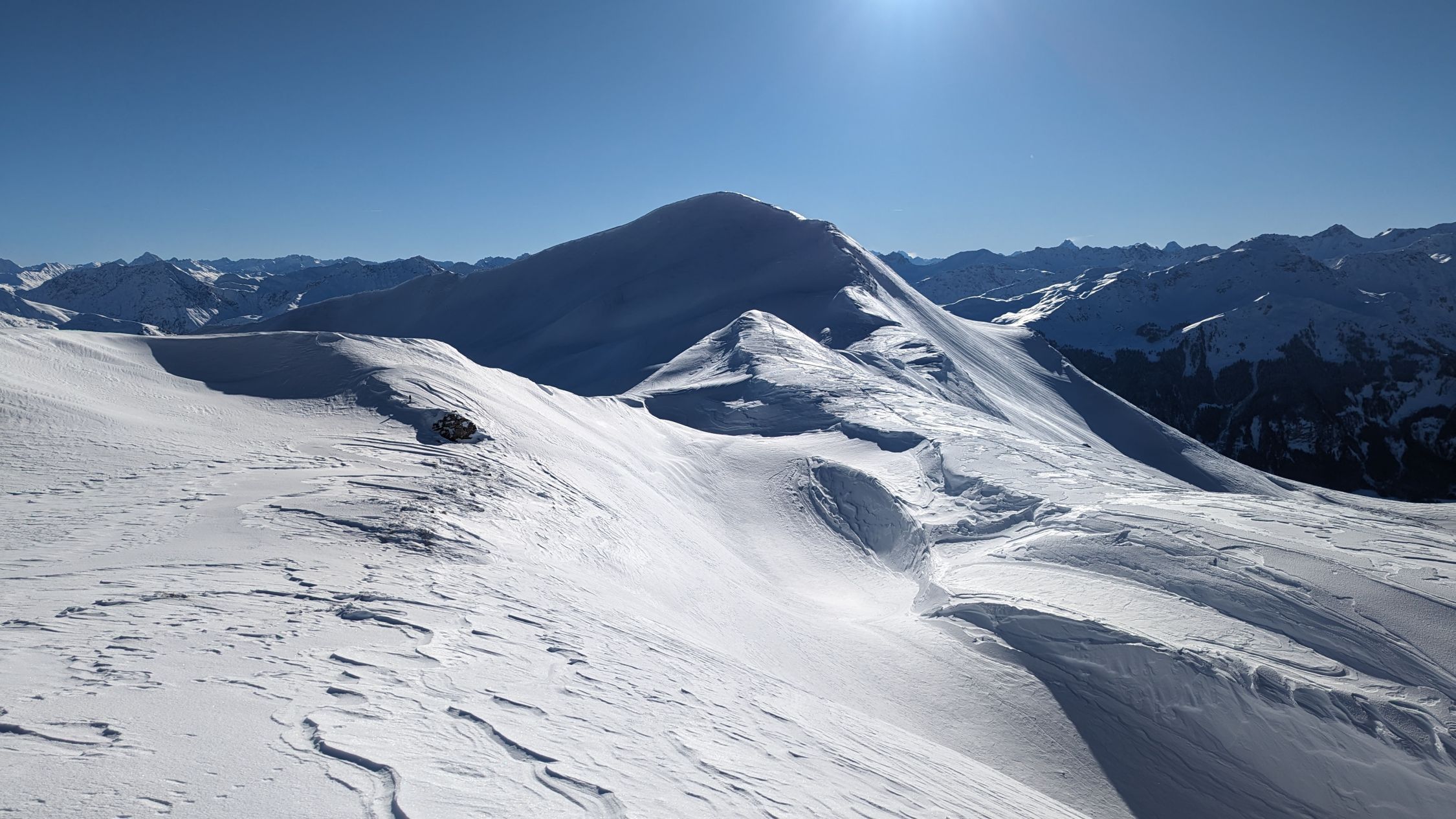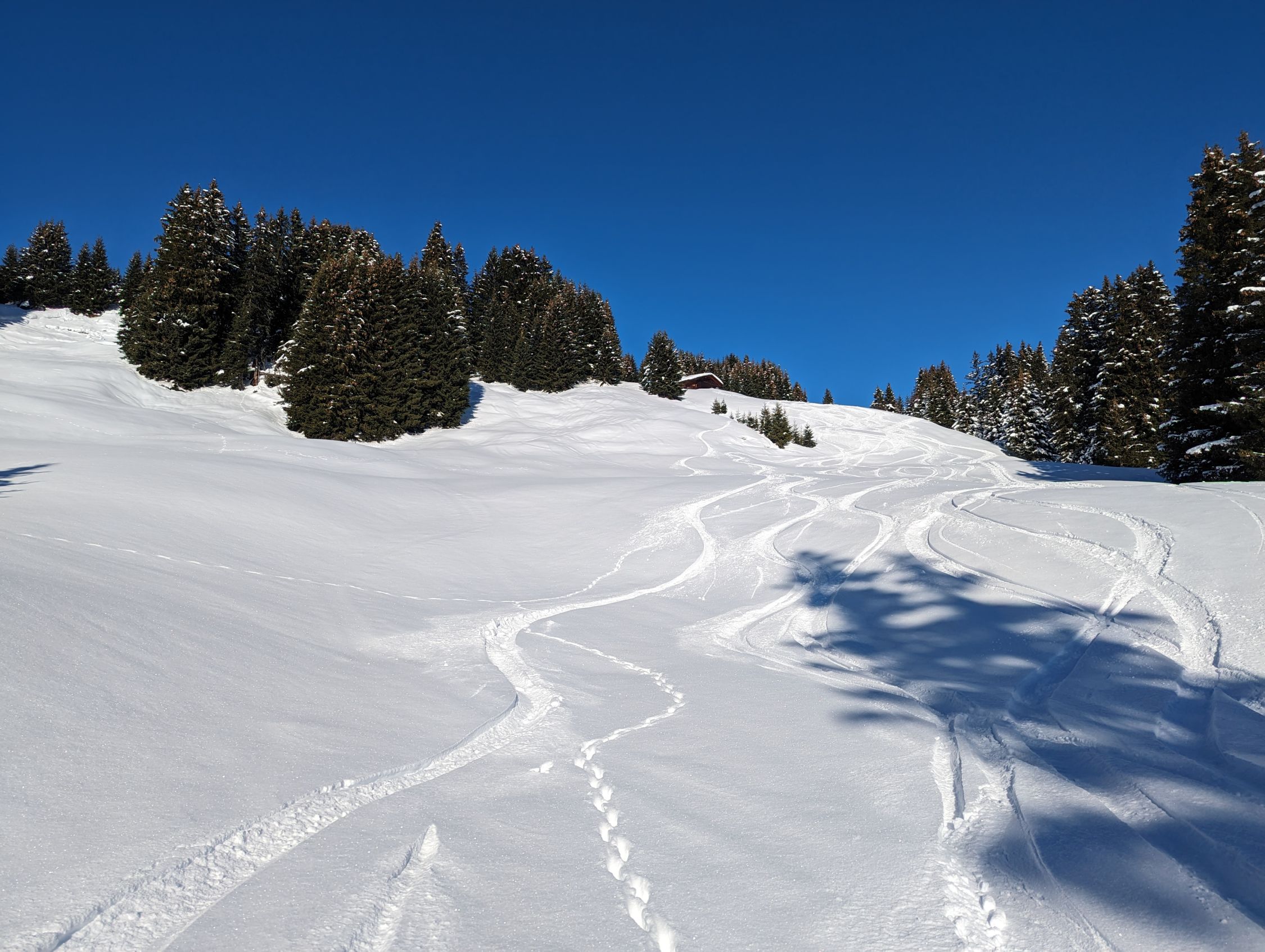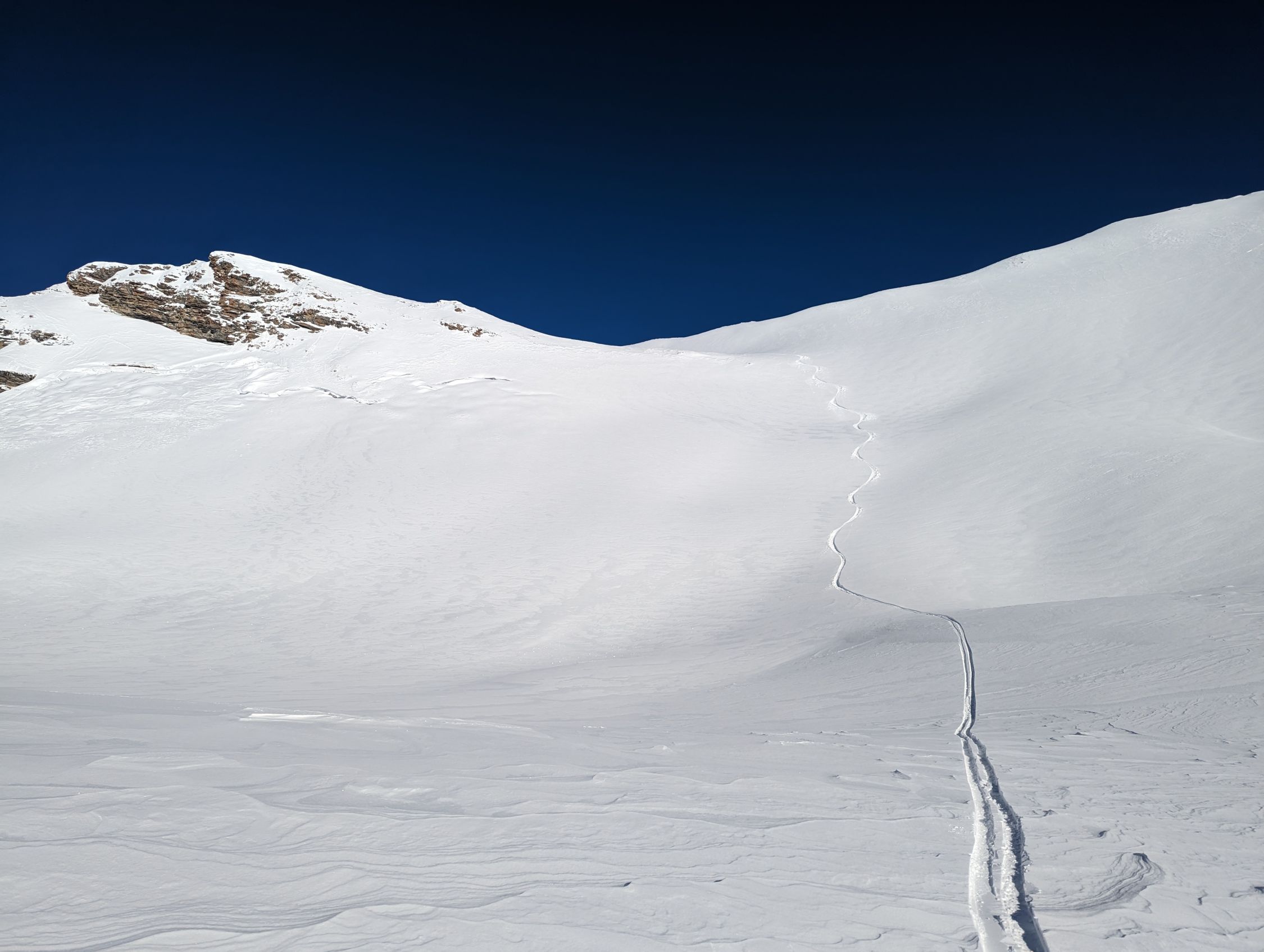 Ausreichend Schnee ab Start. Je höher ich kam, desto mehr war der Pulver windgepresst. In den steilen Passagen gings mit Fahren, sonst hat es gebremst. Weiter unten wurde der Schnee klebrig feucht. Gräben im unteren Bereich auch noch nicht sicher eingeschneit.
