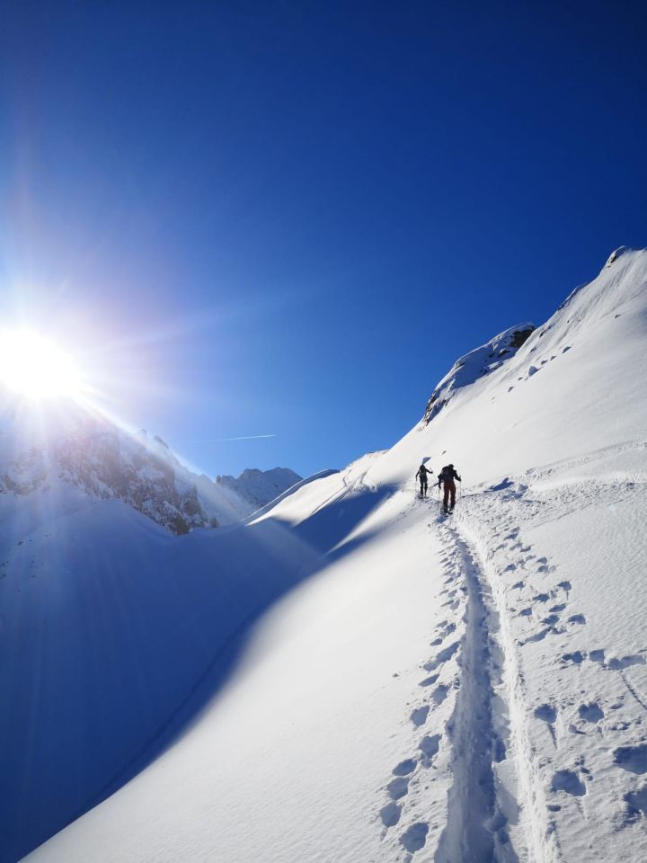 Aufstieg von Höchst neben der Skipiste bis Metschhore. Abfahrt ins Chumi in bestem unverspurtem Pulverschnee. Dann Aufstieg Richtung Howang auf guter Spur. Abfahrt über den Westhang mit ca 30cm Pulver auf guter Unterlage. Heute erstaunlich wenig Tourengänger unterwegs daher noch genug Platz für schöne Spuren !