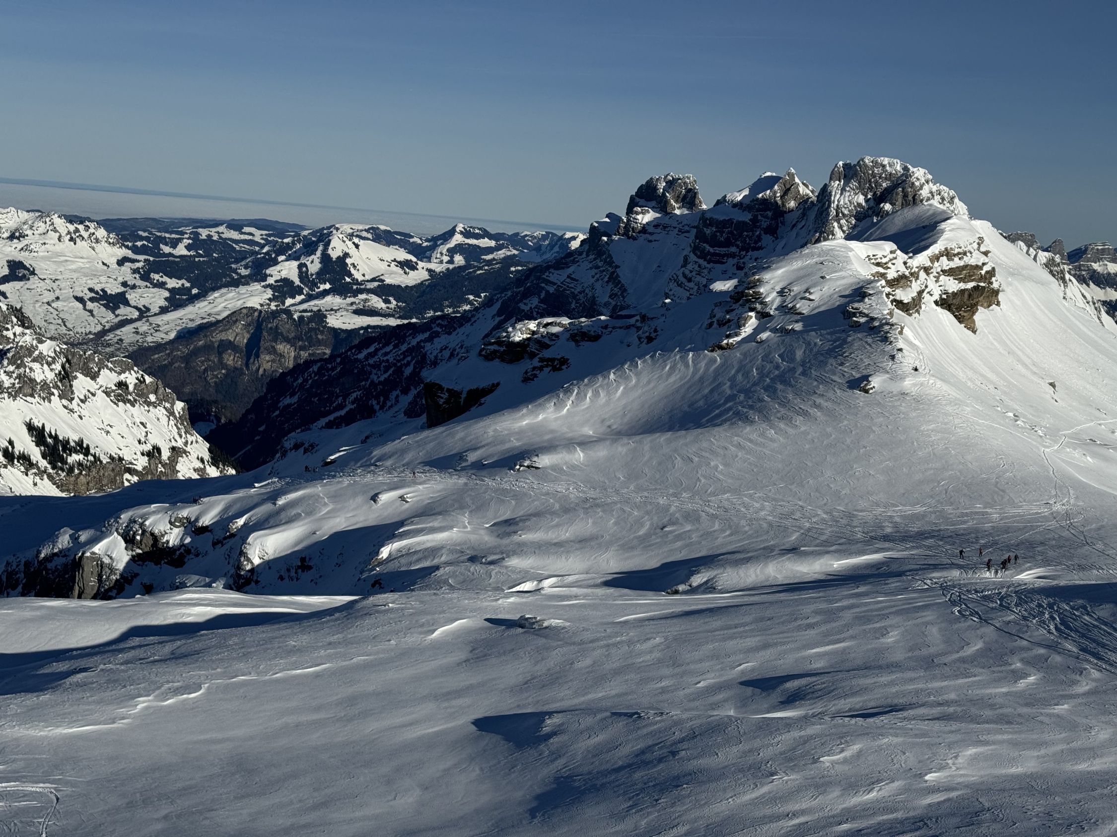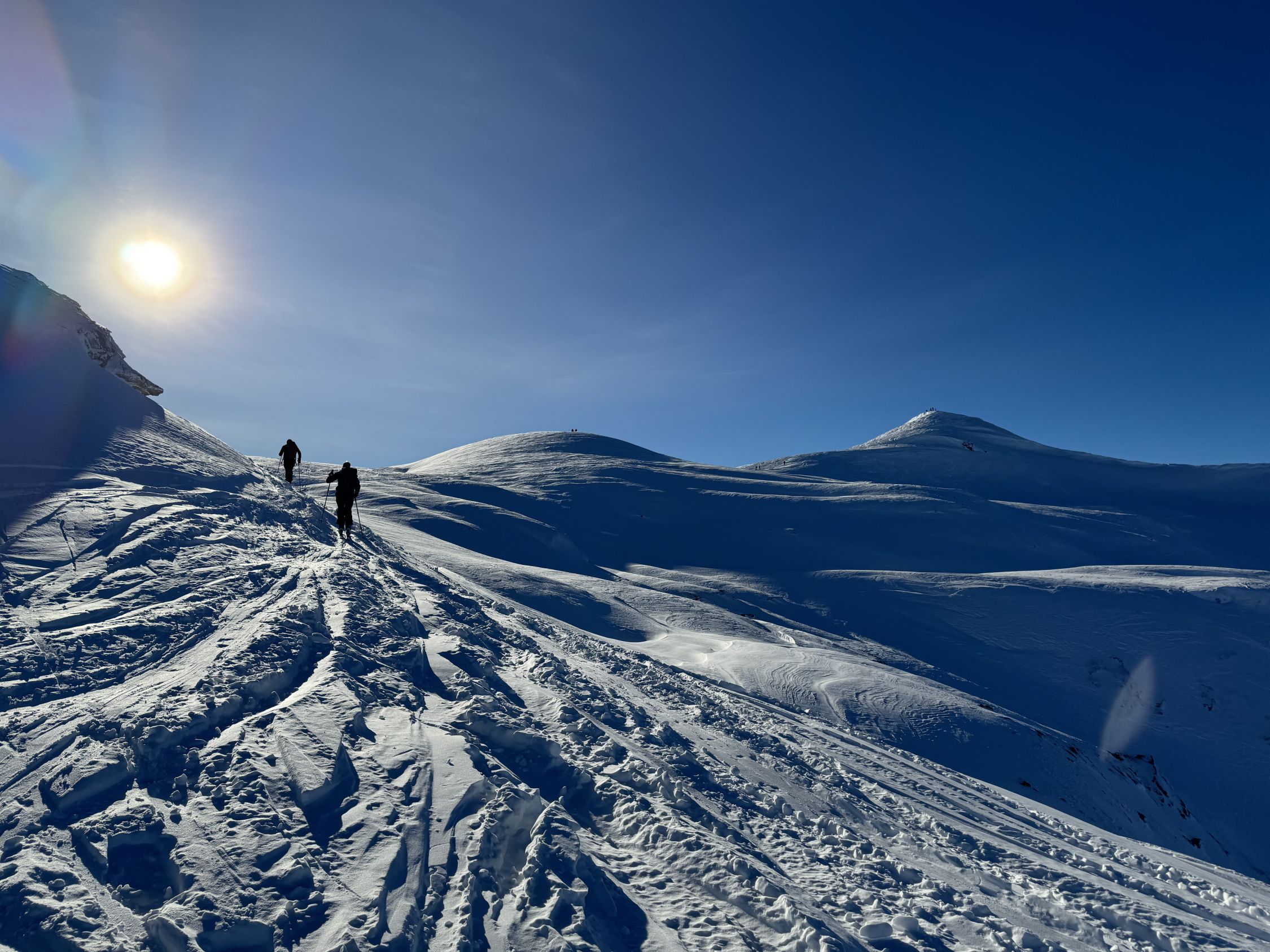 Bei der Überquerung von Graten hatte ich wiederholt Steinkontakt. Sonst ist das Gebiet oberhalb 1600m aber gut eingeschneit.