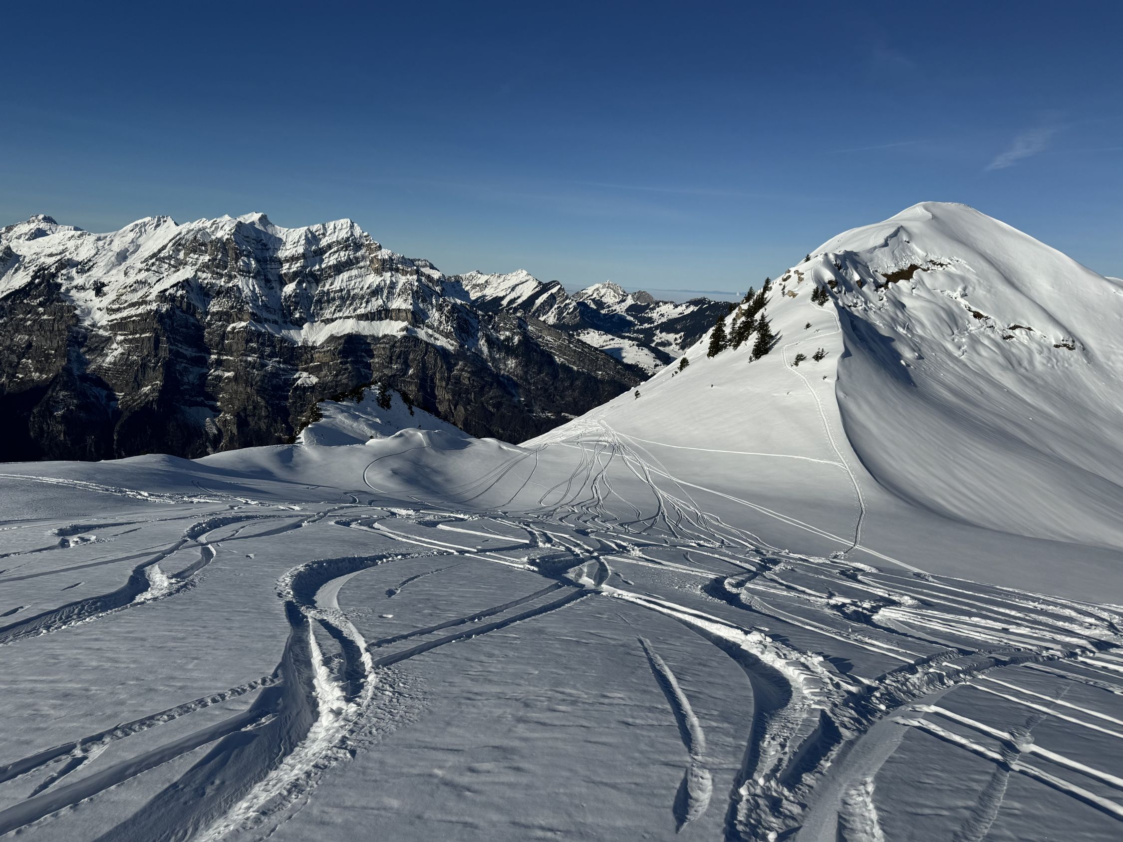 Im Laufe des Vormittags wurde der Pulverschnee recht feucht. Weiter oben teils gepresster Schnee.