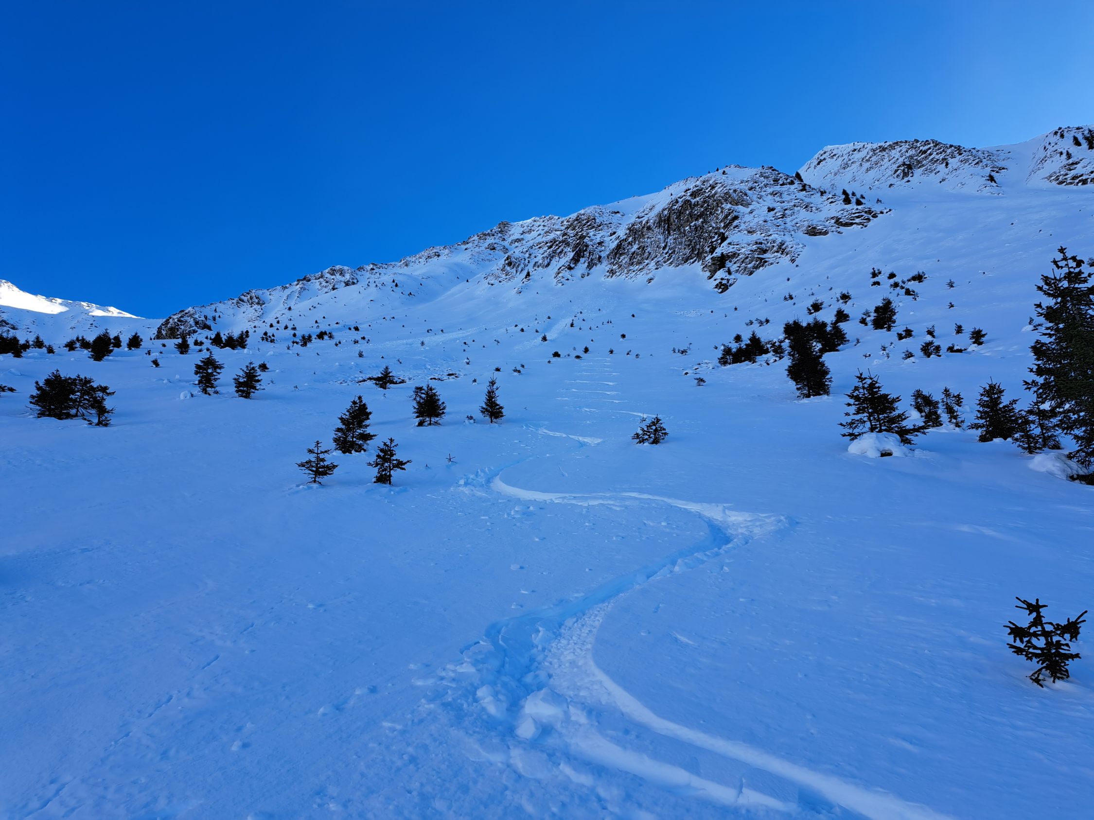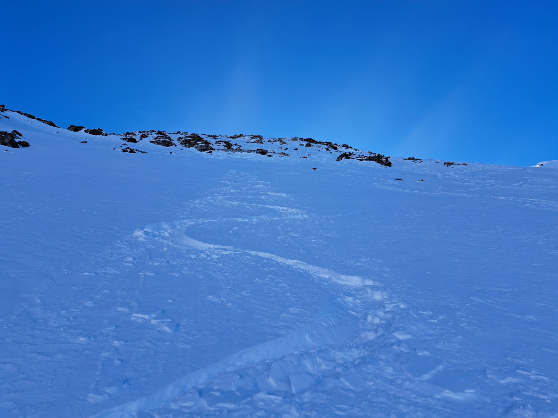 In den beiden Nordhängen teils noch knapp eingeschneite Steine die du nicht siehst.