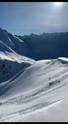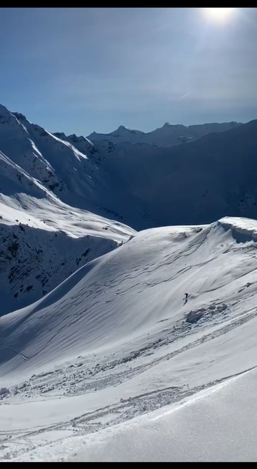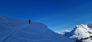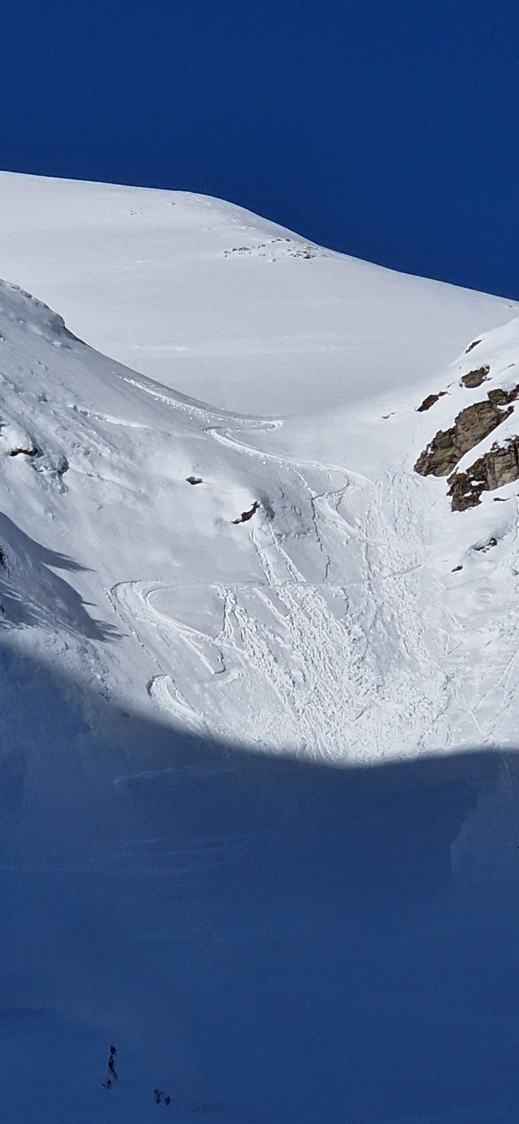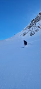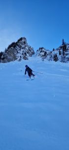 Die Aufstiegsspur ist gut angelegt, freie Pulverflächen gabs noch genug, einige davon wurden jedoch durch fiese Lawinenkegel besetzt.