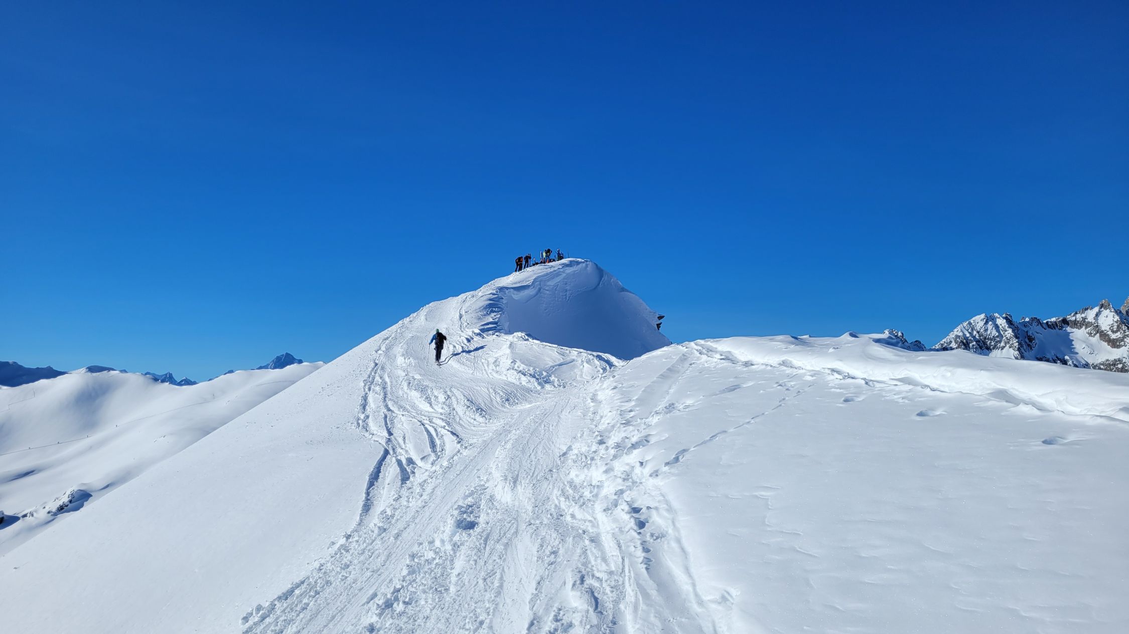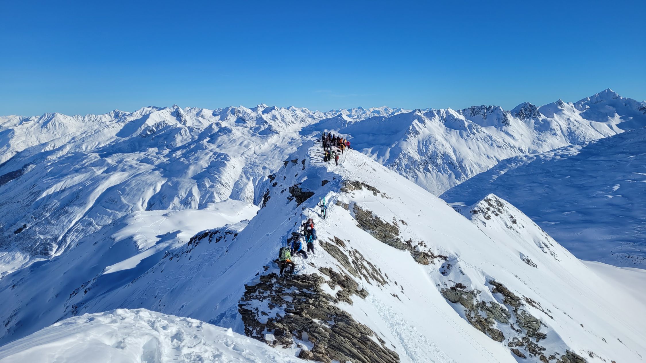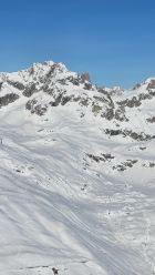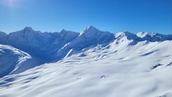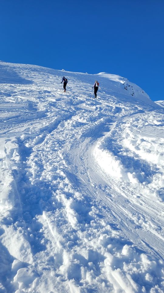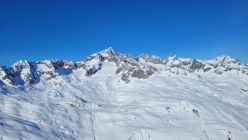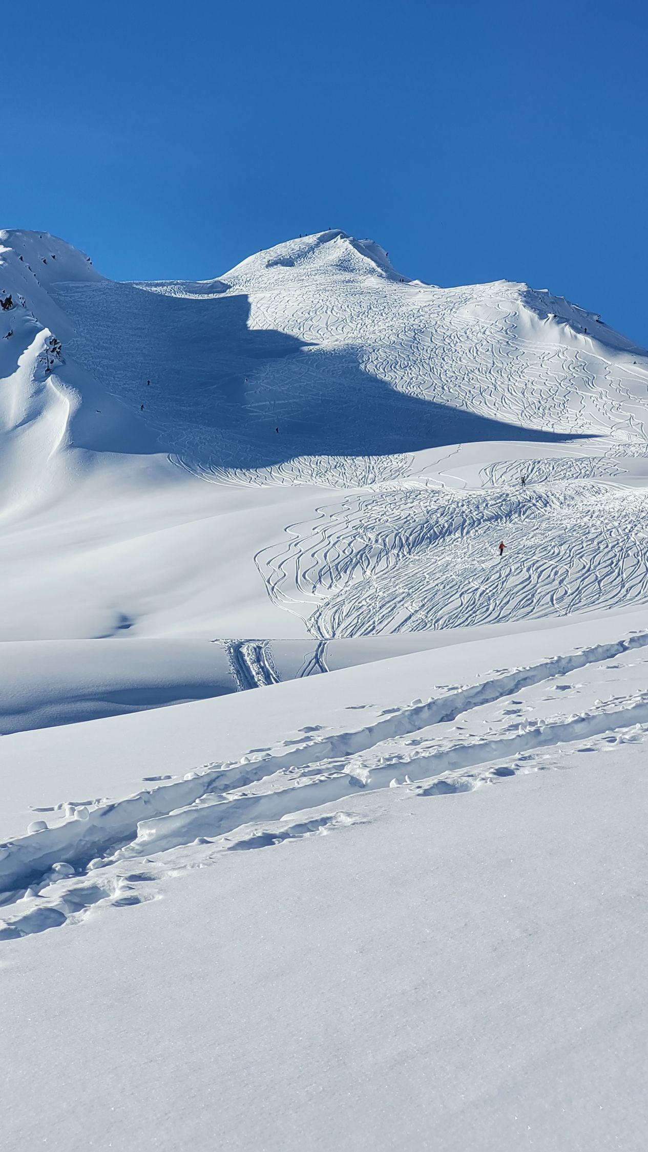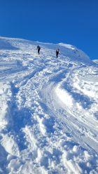 Ab Parkplatz gut und genug Schnee. Verschiedene gute Aufstiegsspuren, jetzt alles verfahren