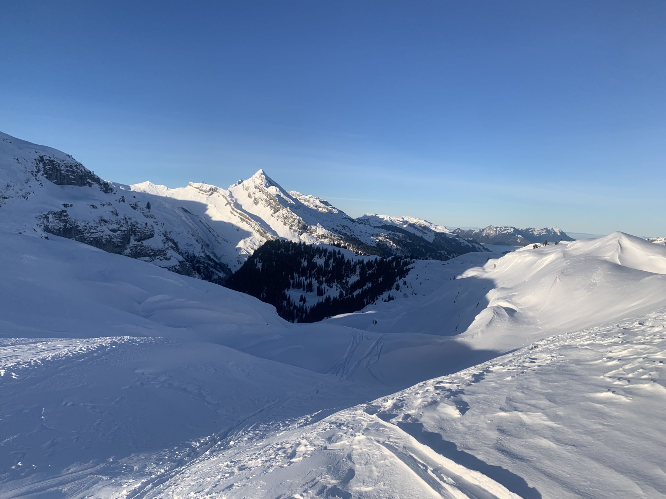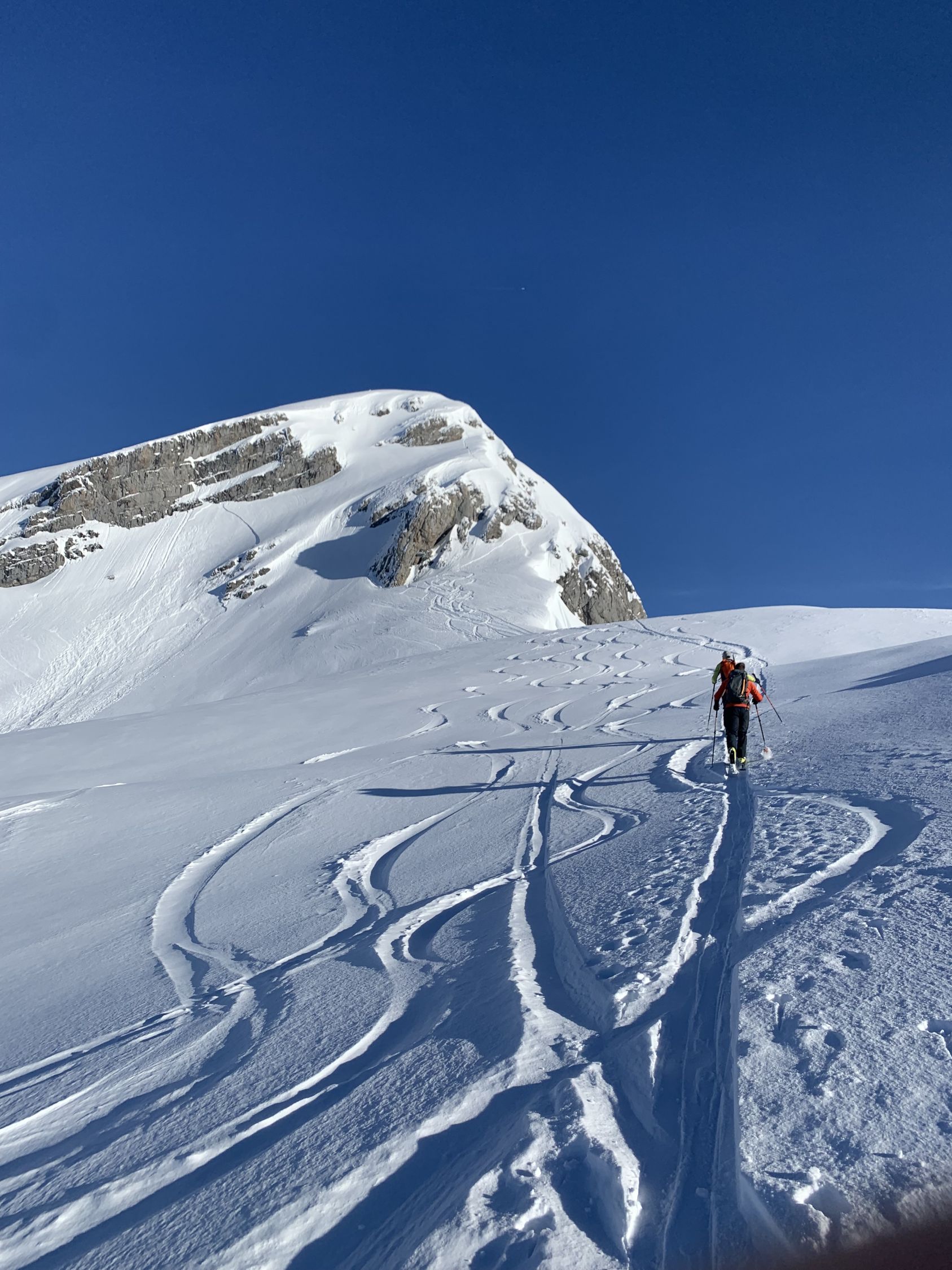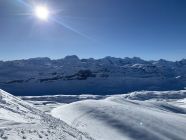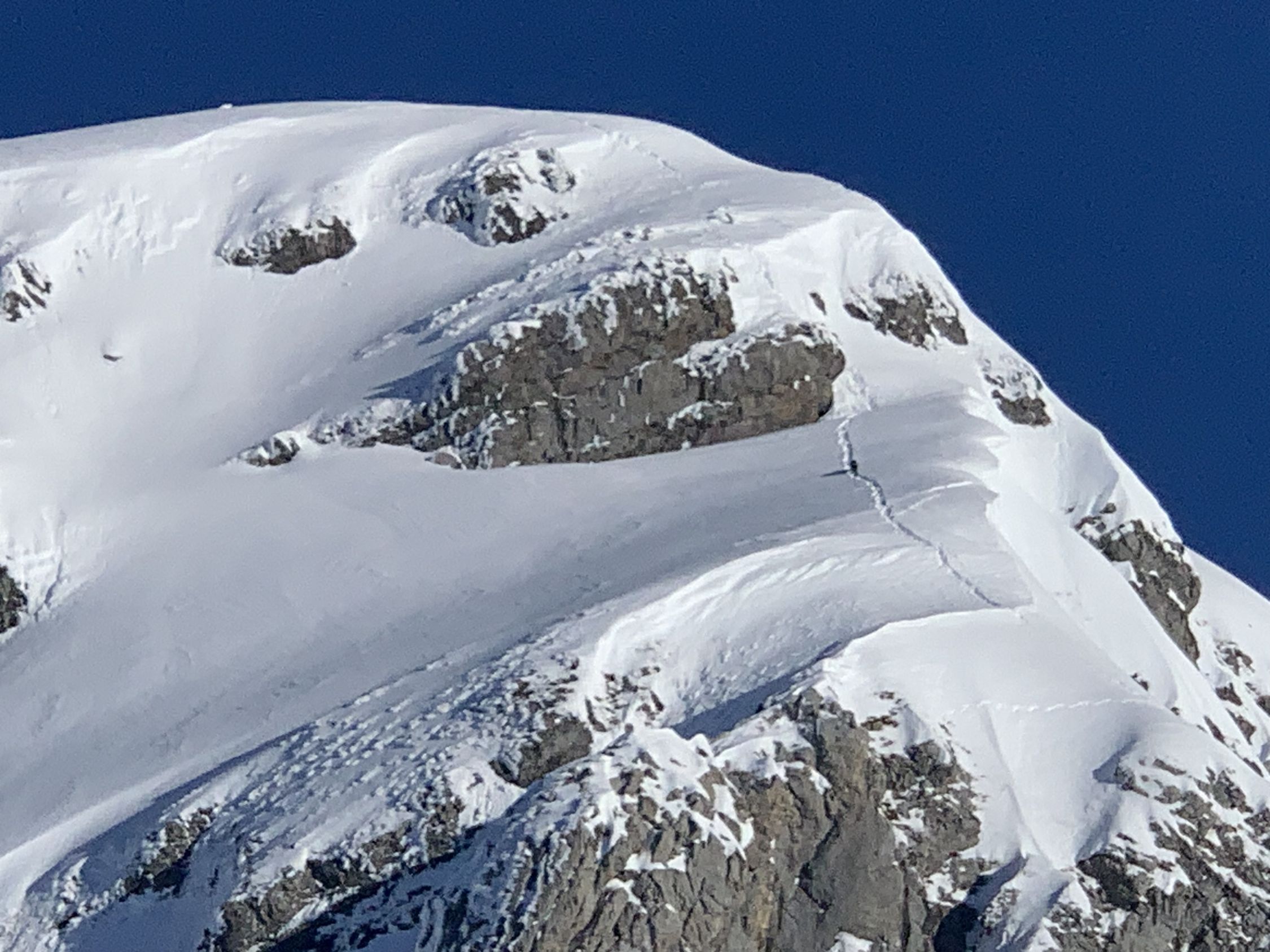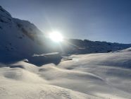 Beim Start am Schwarzenbach um 7:30 Uhr noch -2° C. Im Richliswald bereits angefeuchte Schneedecke, in Folge hässliche Stollenbildung. Nachwachsen half. Sonst ganz passable Verhältnisse im Richliswald. Ab Bärensol dann trockener Schnee. Bis zum Skidepot auf teilweise verblasener Spur vom Vortag (Merci den Vorspurern). Fussaufstieg zum Gipfel in teils knietiefen Schnee - eher Papp- den Trittschnee. Die Idee, noch gegen den Crisset aufzusteigen, war zwar verlockend, die zunehmende Wärme liess uns aber davon Abstand nehmen. Gegenaufstieg zum Pfaff (Kreuz), mit An- und Abfellen etwas mühsam gen Bergstation Glattalpbahn. Abfahrt in mehr oder weniger gutem Schnee bis zur Talstation. Keine weiteren Personen auf der gesamten Route angetroffen.