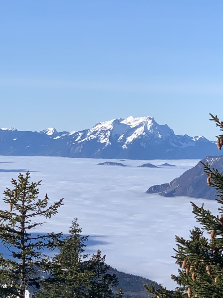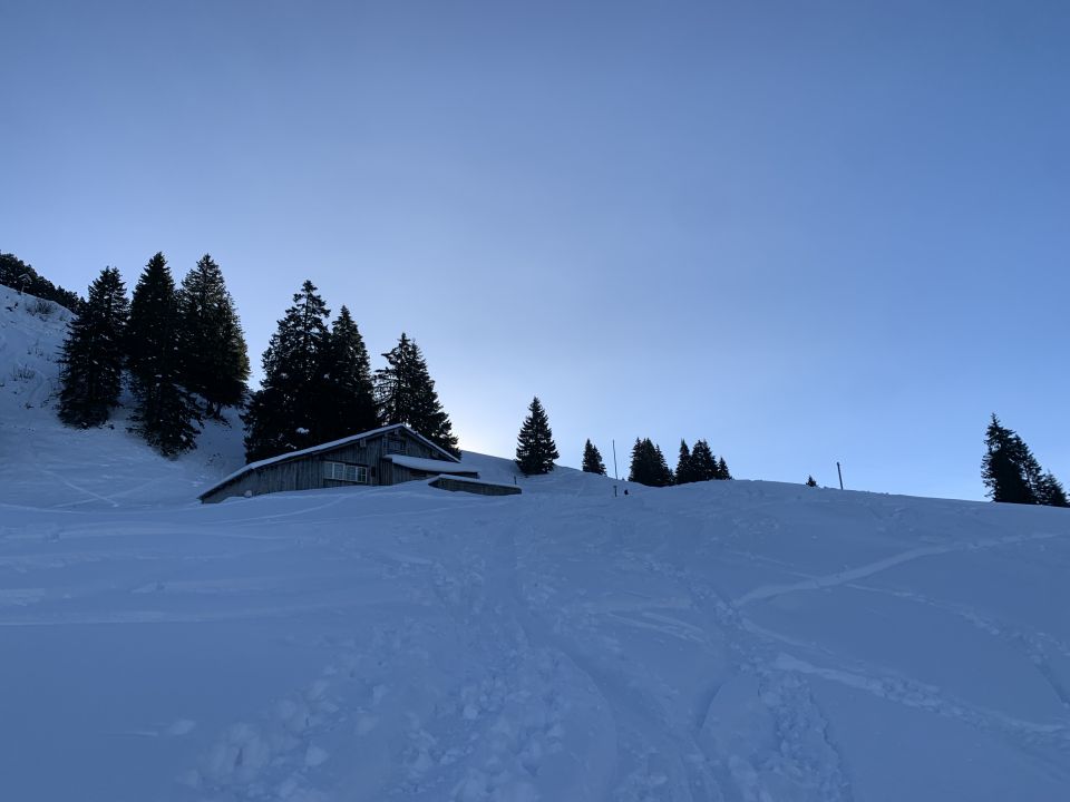 Bin um 09:00 Uhr gestartet und hatte gute Verhältnisse von unten bis zum Gipfel. Schöner Pulverschnee für die Abfahrt. Obwohl die Hänge durch die guten Verhältnisse der letzten Tage verspurt sind, hat es immer noch Platz gehabt, um eigene Spuren zu ziehen.