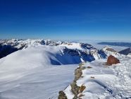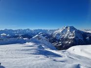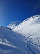 Mehrheitlich windgepresster Neuschnee. Abfahrt im Bereich der beliebten Schilt-Skitour ist bereits stark verfahren.