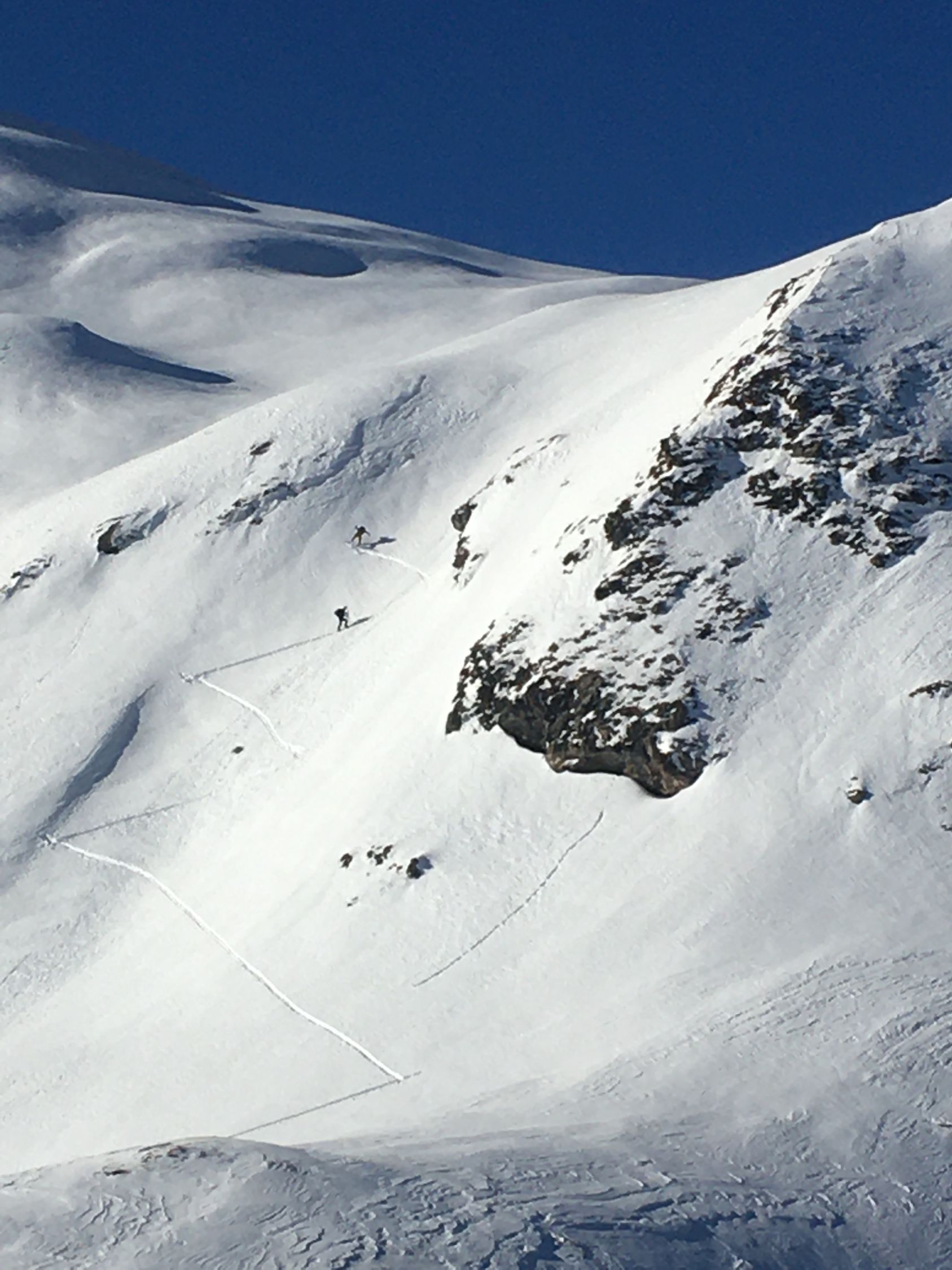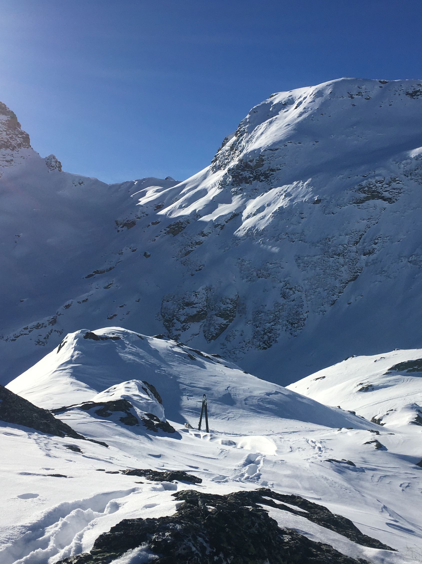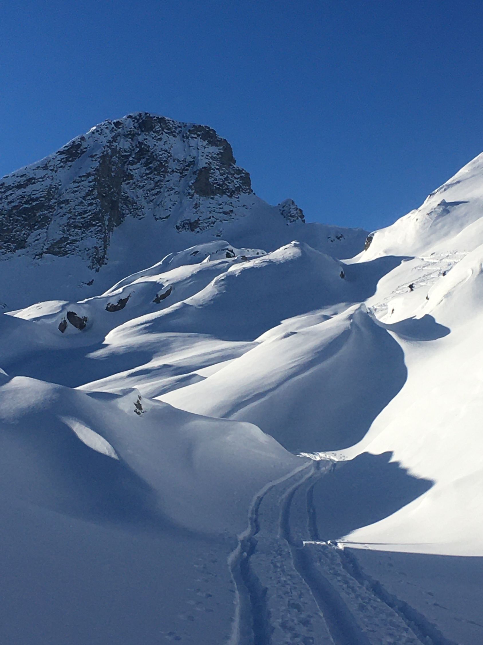 Kurze Tour auf den Felsgipfel P. 2581 östlich der steilen Flanke Piz d‘Emmat Dadora, WS-. Start La Vaduta 8.45 Uhr, minus 3 Grad, leichter Westwind. Gute Spur bis vor meinem Ziel Punkt 2581. Zwei Tourengänger haben mich überholt kurz nach Leg Grevasalvas. Kurz vor meinem Ziel waren sie verschwunden, vermutlich sind sie zur Julierstrasse abgefahren. Ich machte mich um 12 Uhr bereit, da sah ich um 12.15 Uhr zwei Tourengänger in der Ostflanke für Aufstieg Piz d‘Emmat Dadora . Für meinen Geschmack etwas spät, in der Abfahrt dann im Schatten. Tolle Pulverschnee Abfahrt zum Leg Grevasalvas, nur Aufstiegsspuren, anfellen für Aufstieg zu Punkt 2449 und perfekte Abfahrt zur Veduta.