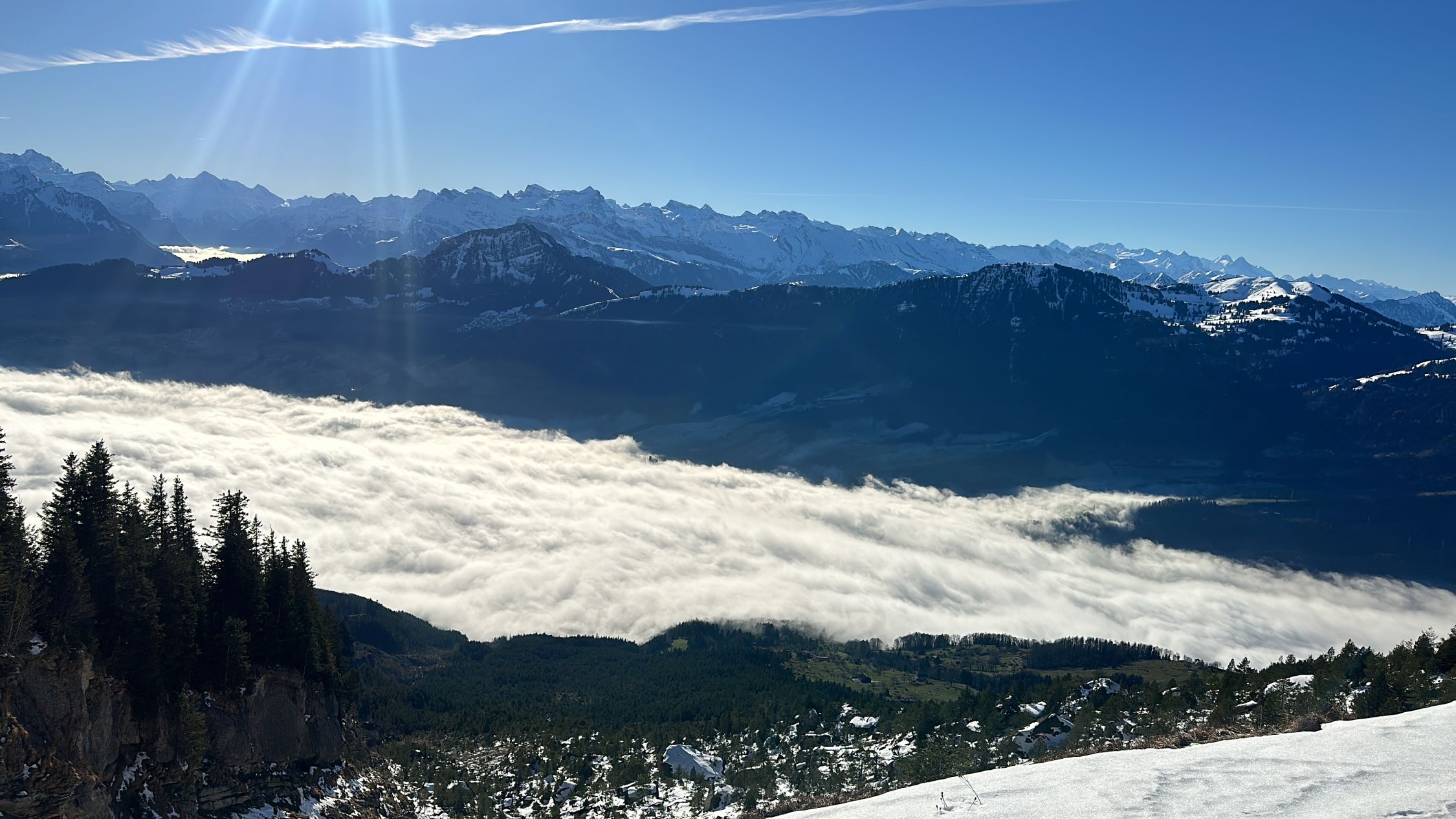 Alles sehr trocken und erst kurz vor dem Gipfel fängt der Schnee an -oben hat es dann schon reichlich Schnee; Abstieg ebenfalls problemlos via Gribsch, die ersten 200HM noch reichlich Schnee, aber nachher alles trocken und gut.
