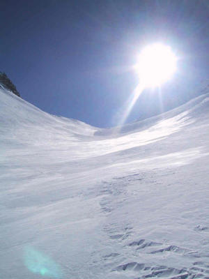 Sonne hat nun bereits viel Kraft. Um Mittag auf 1500 m ca. 6 Grad plus