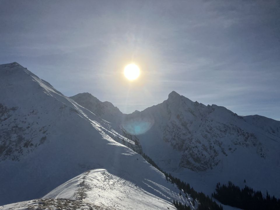 Abfahrt je nach Routen sehr grifig wie auf Piste, bis Eisig und Bruchharsch.
