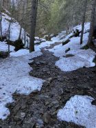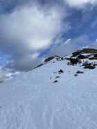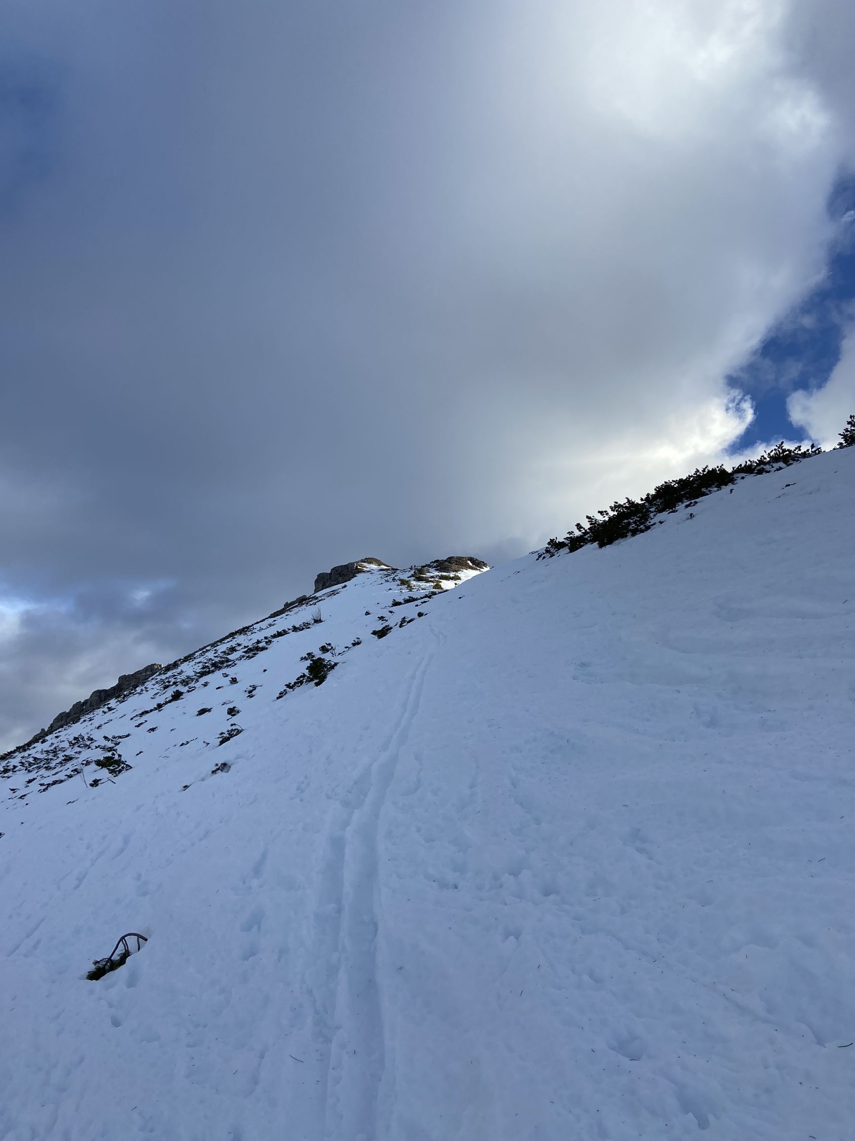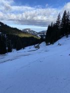 Abfahrt auf Skipiste schon sehr wenig Unterlage.
