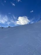 Sonst sehr warm, Schnee weich aber teilweise wie ein leichter Harschdeckel. Ging, aber nicht gut. Für richtige Firnverhältnisse war es nicht warm genug.